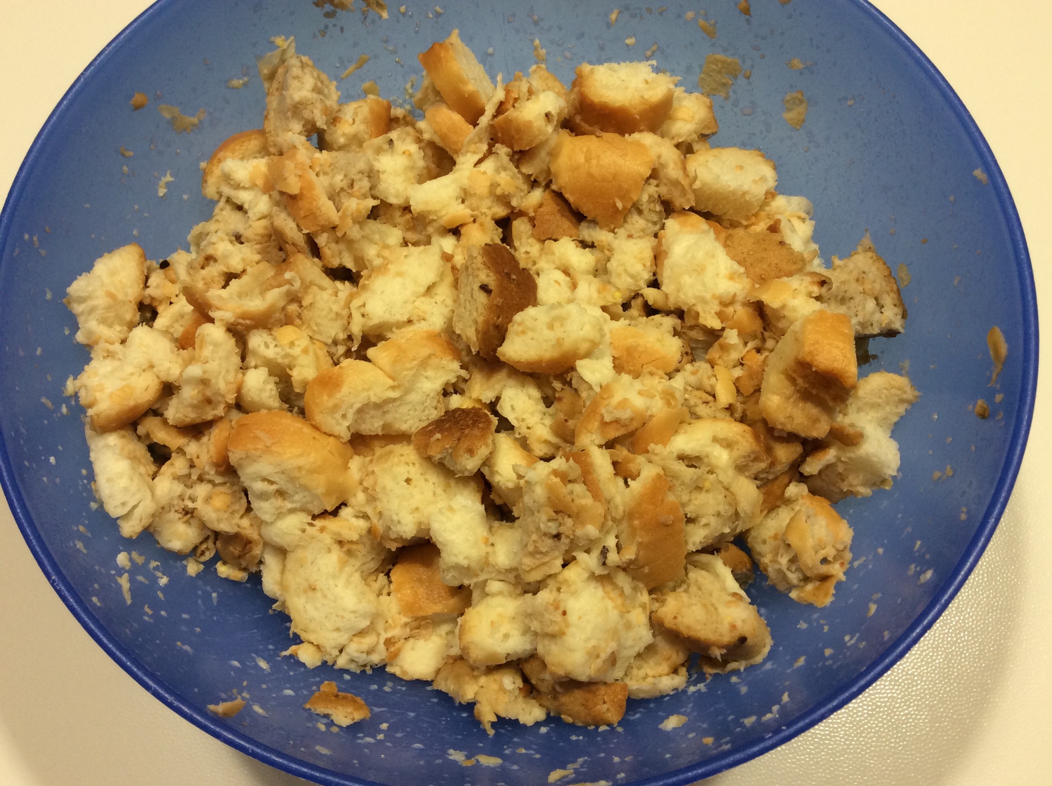 Taglio a pezzetti piccoli il pane raffermo