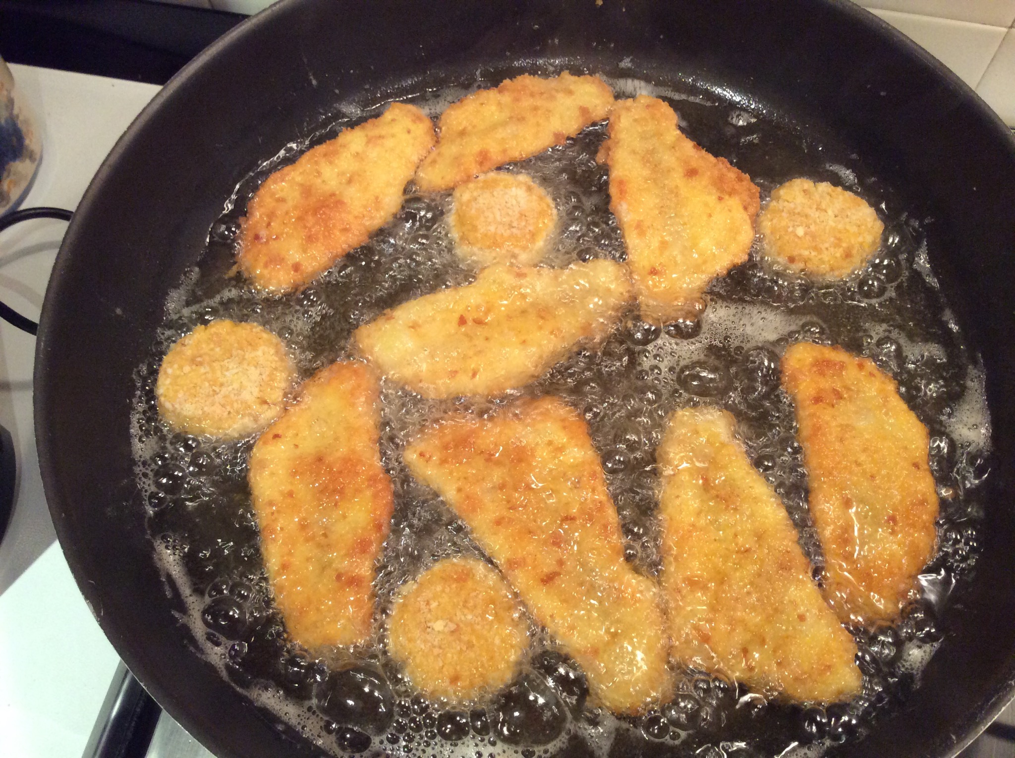 Quando sono tutti impanati se avanza dell’uovo non lo butto ma aggiungo un po’ di pane grattugiato e formo delle polpettine