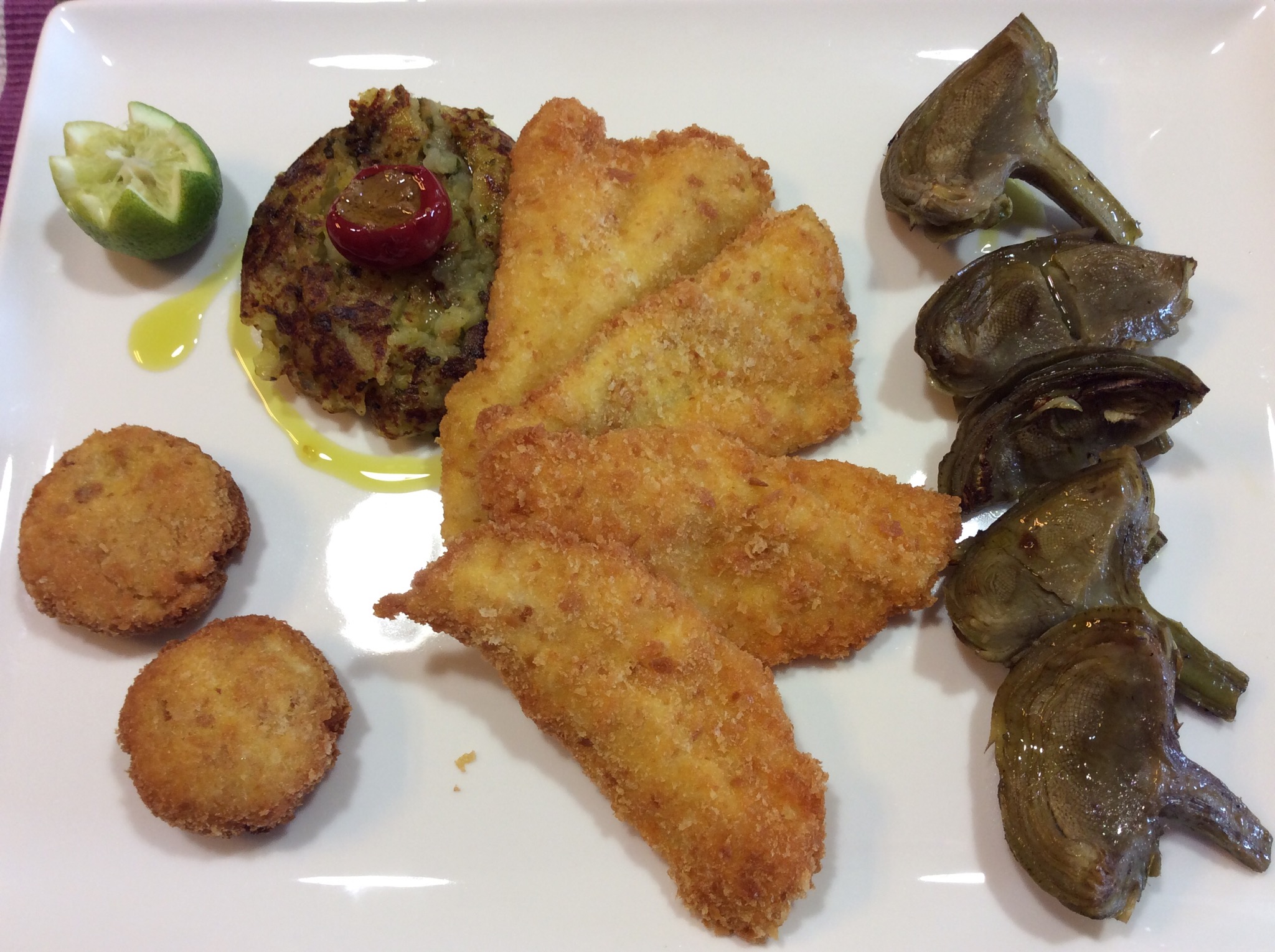 FILETTI DI PERSICO IMPANATI CON TORTINO DI PATATE