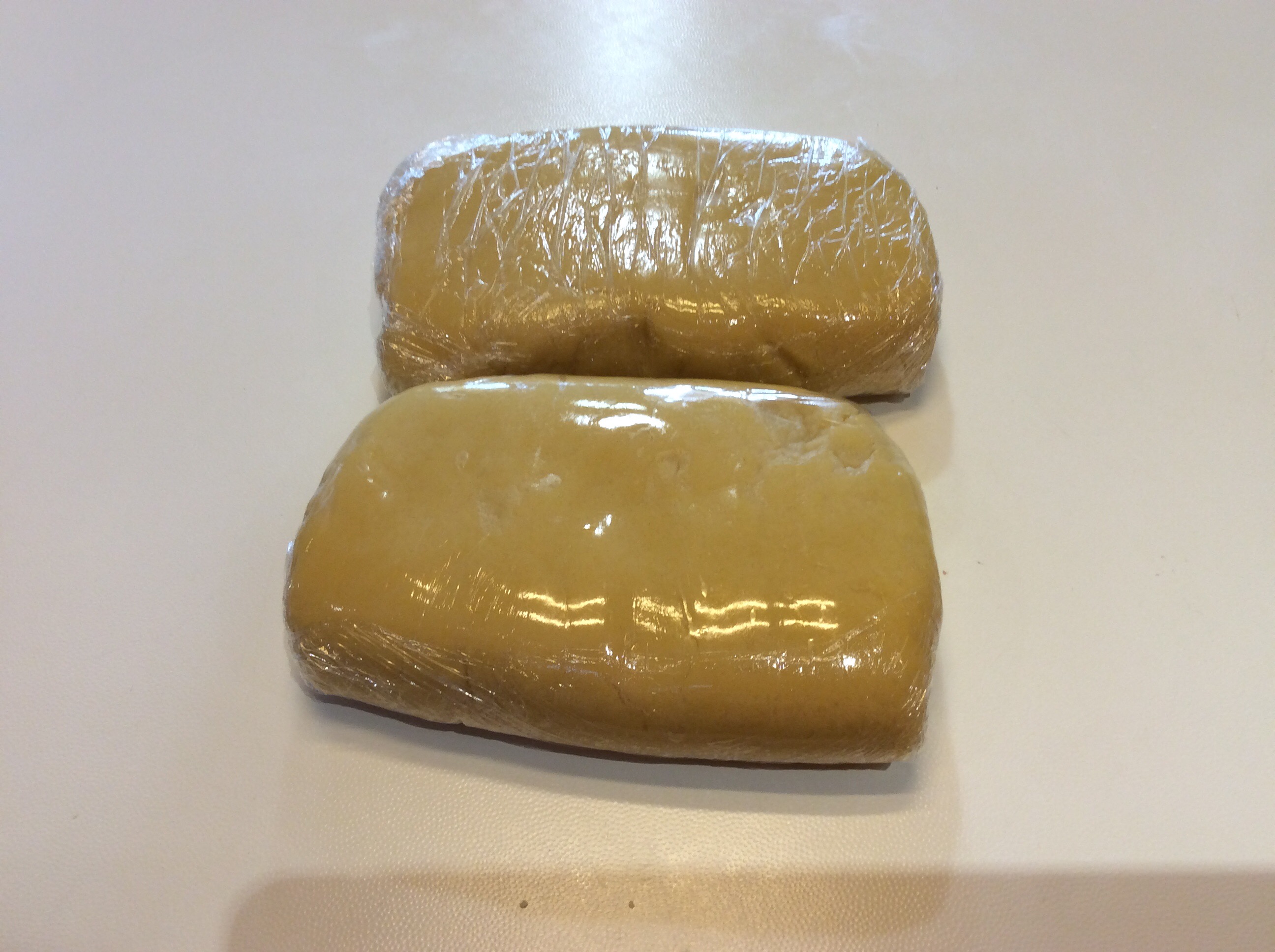 Lo lavoro velocemente e formo due panetti che avvolgo nella pellicola e lascio riposare in frigorifero per circa 1 ora