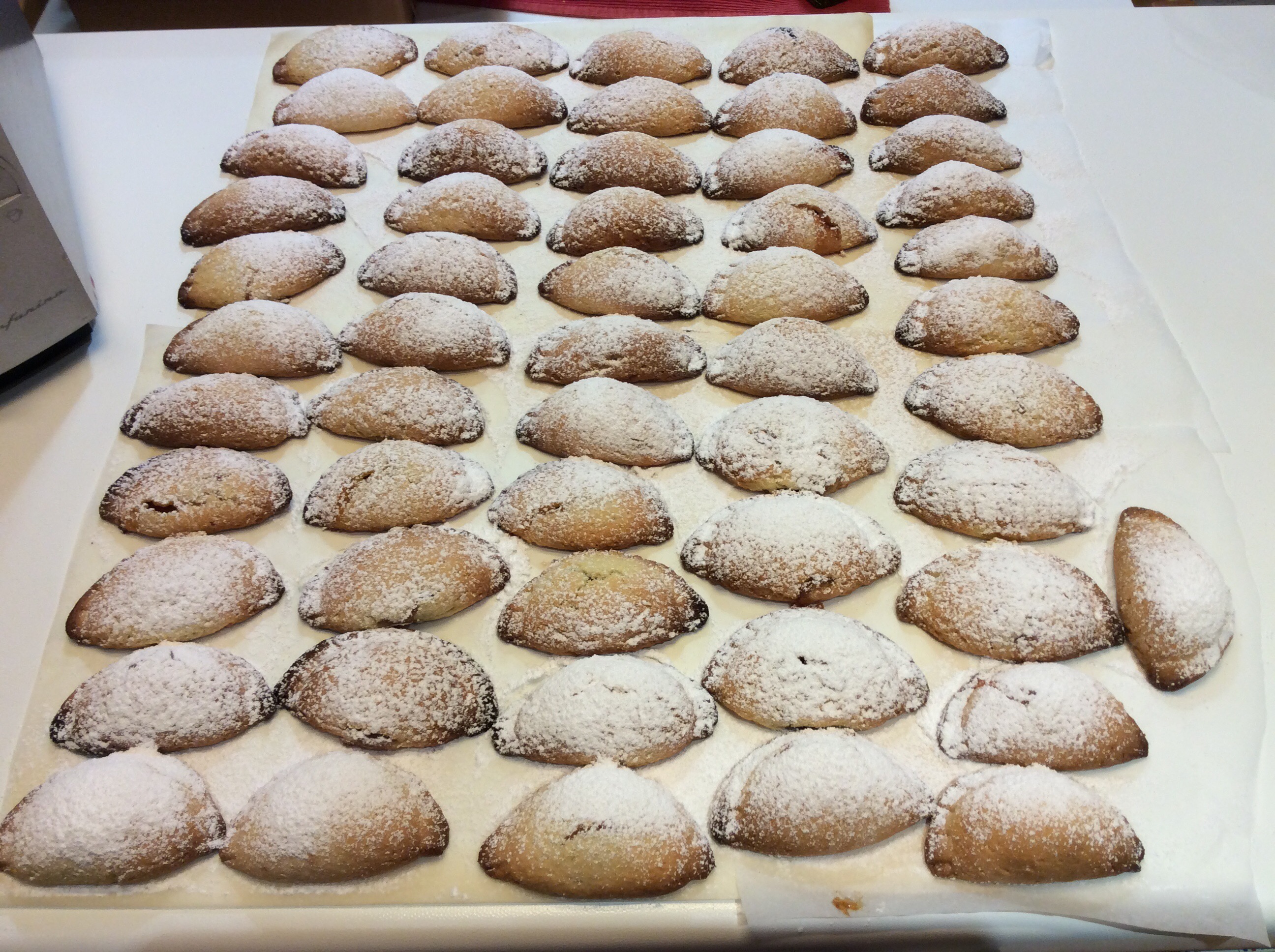 Cuocio a 180 gradi per circa 10/12 minuti, poi quando sono cotti li tolgo dal forno e li lascio intiepidire e li cospargo con zucchero a velo