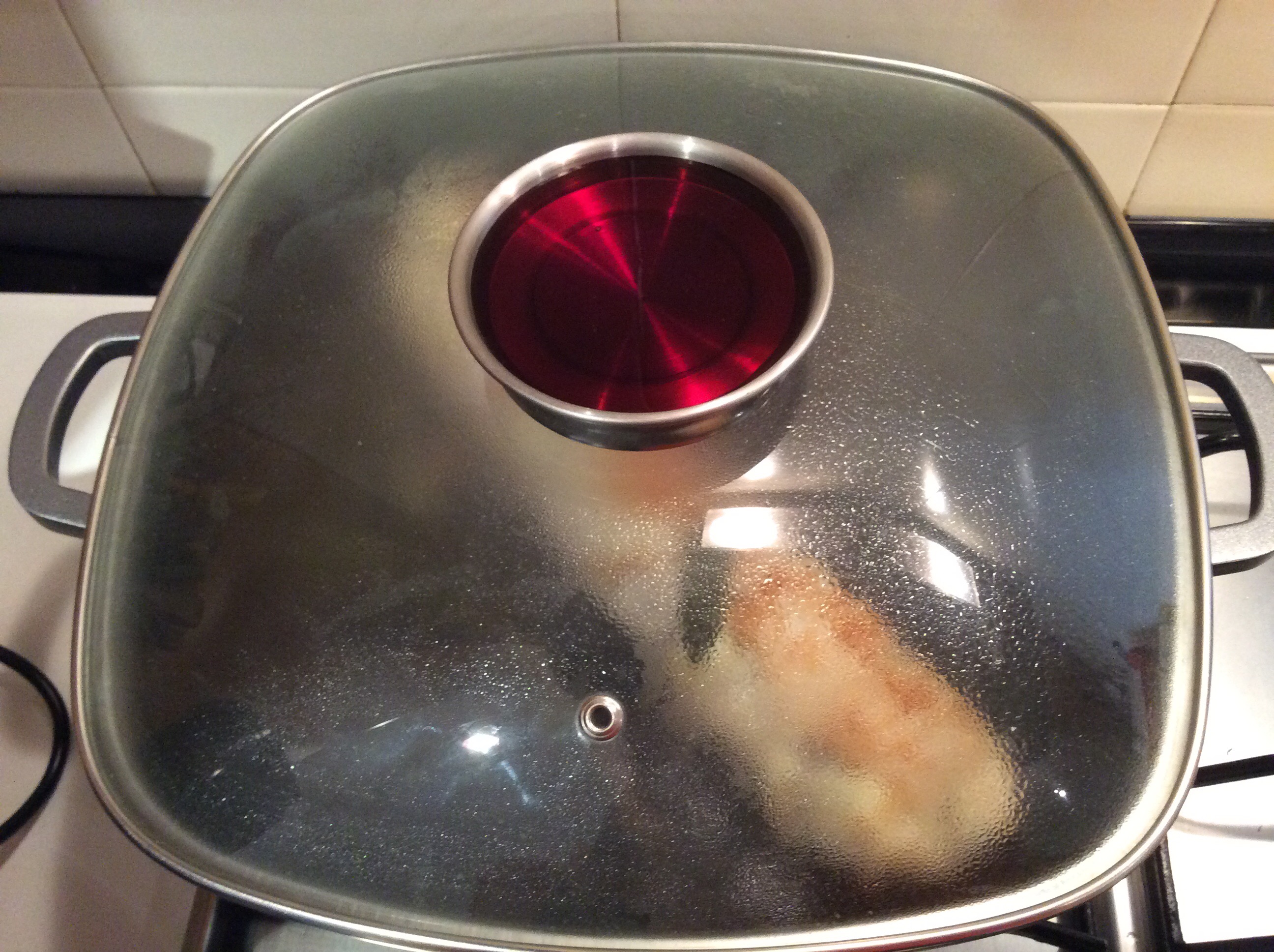 Io ho la pentola aroma più e aggiungo il vino Porto nel coperchio e cade goccia a goccia, potete sfumare come si fa normalmente per un arrosto