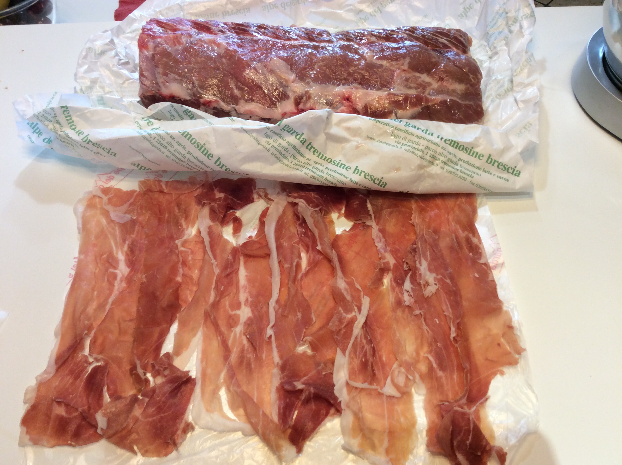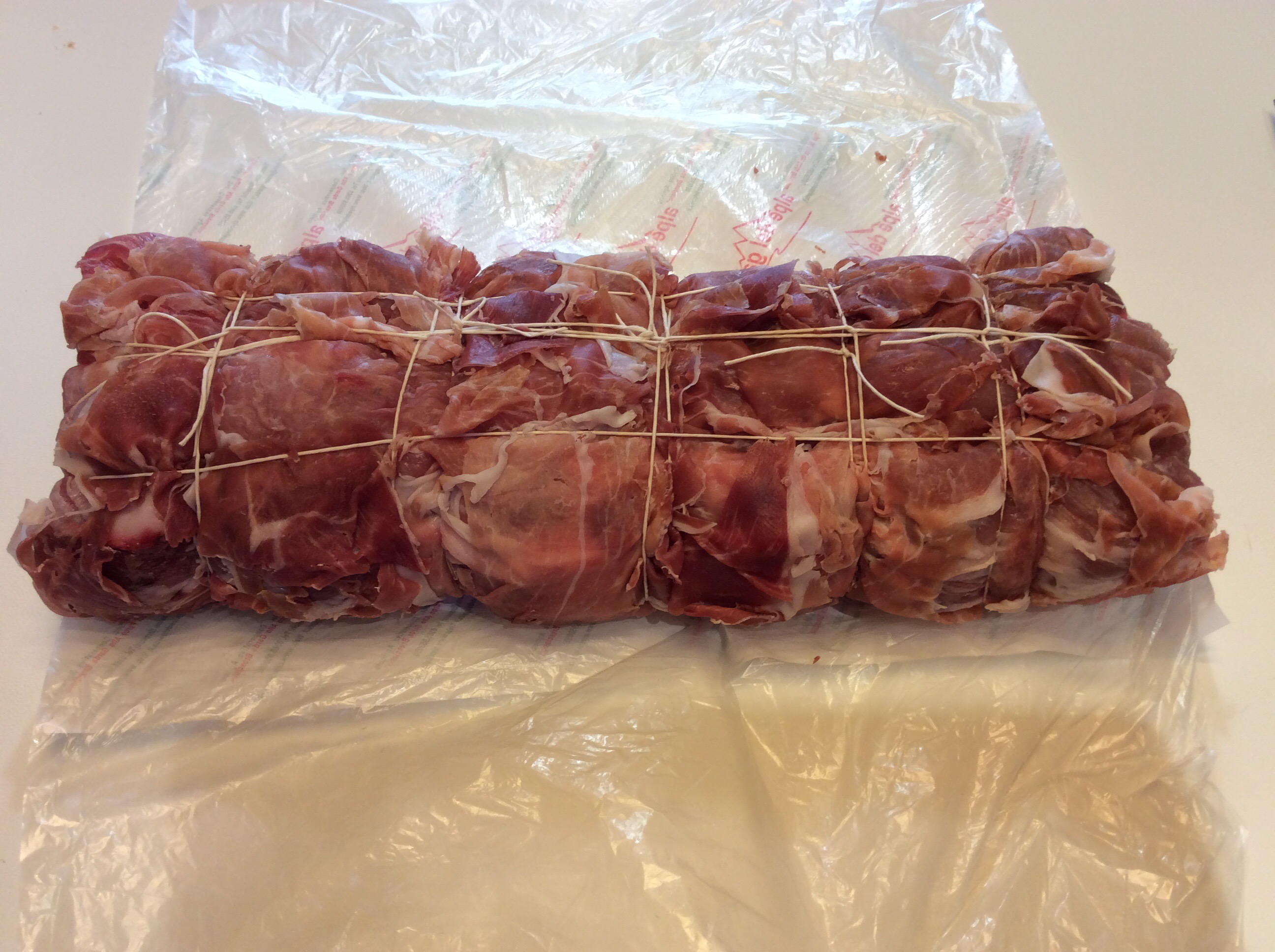 Stendo su un foglio di carta oleata le fettine di prosciutto crudo allineandole