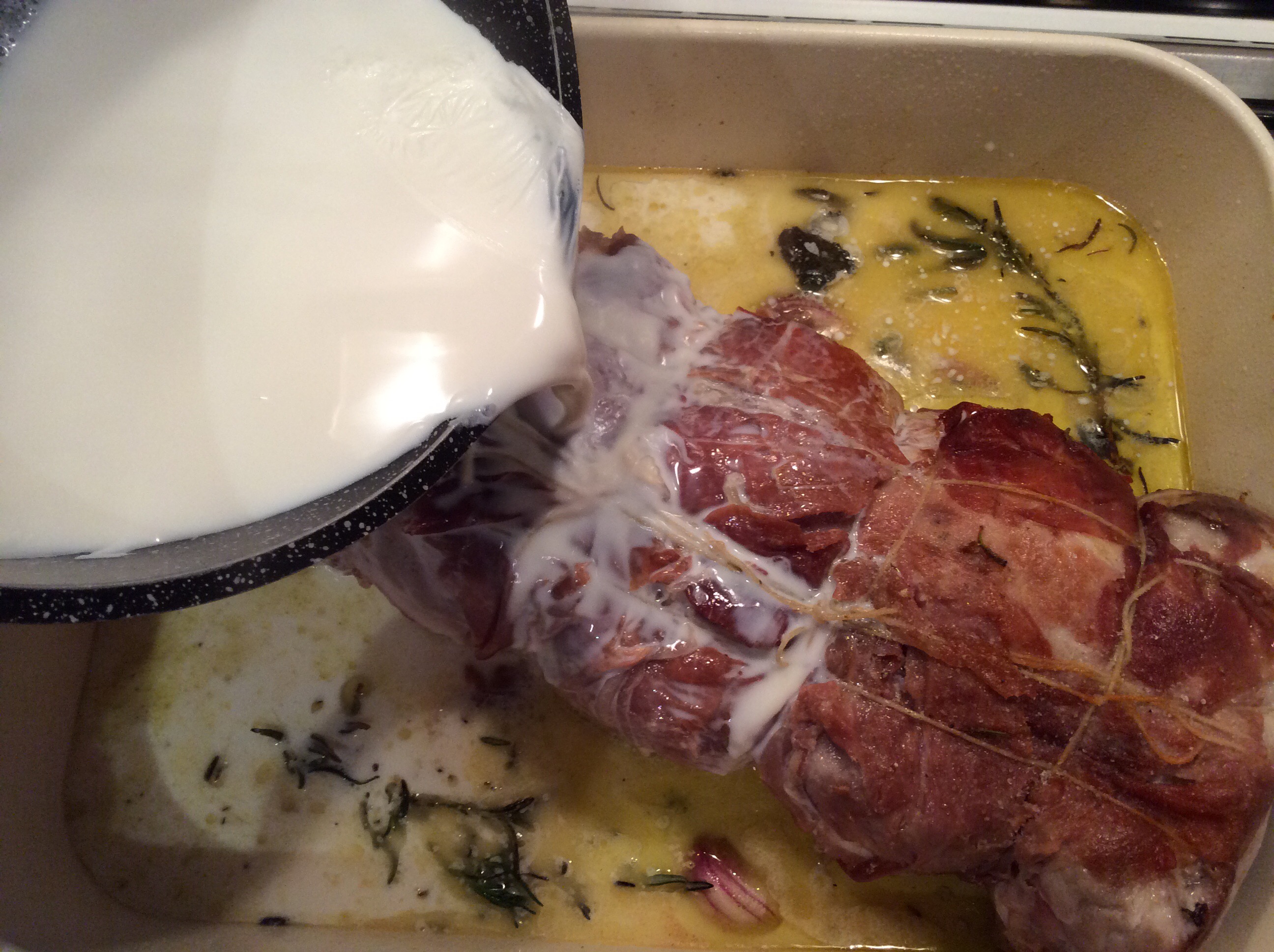 Nel frattempo scaldo il latte e lo verso sull’arrosto