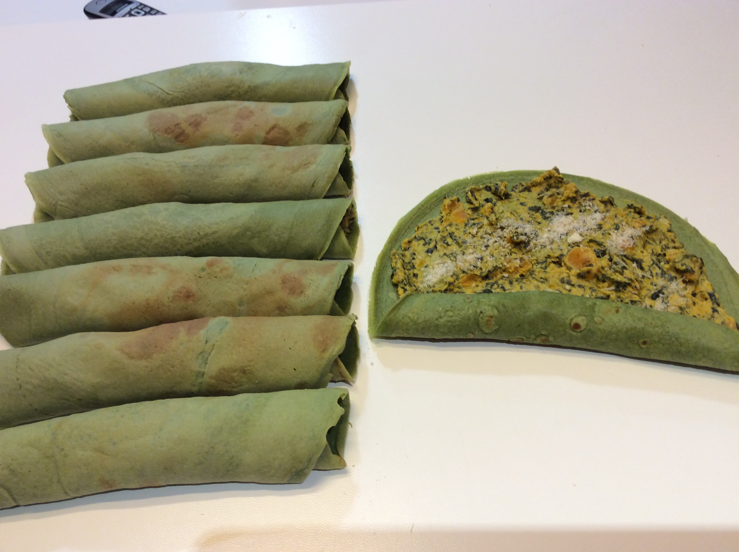 8 CRESPELLE AGLI SPINACI (vedi passaggi ricetta base sul blog) preparate con: