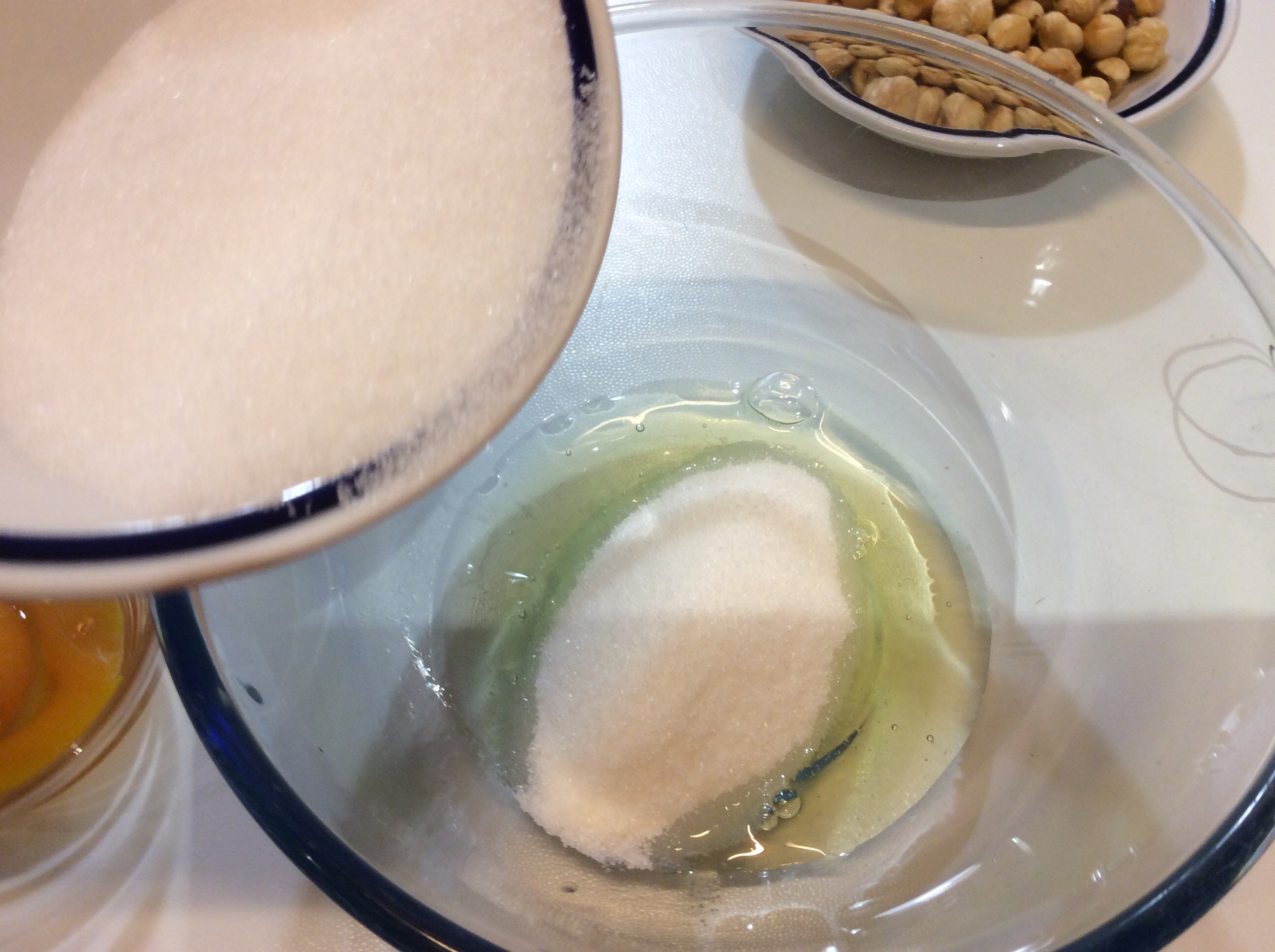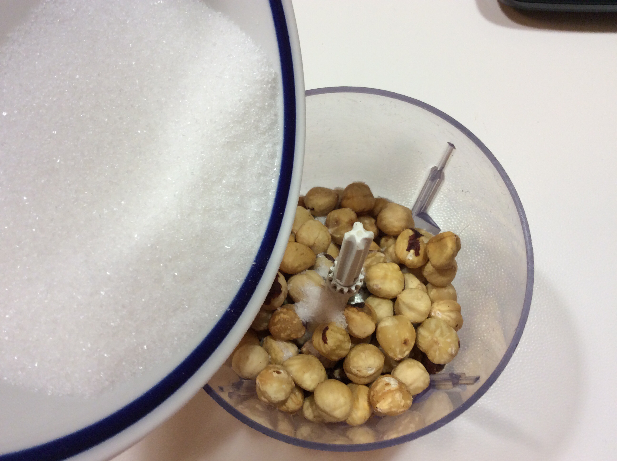 Lo zucchero rimasto lo verso in un mixer con le nocciole