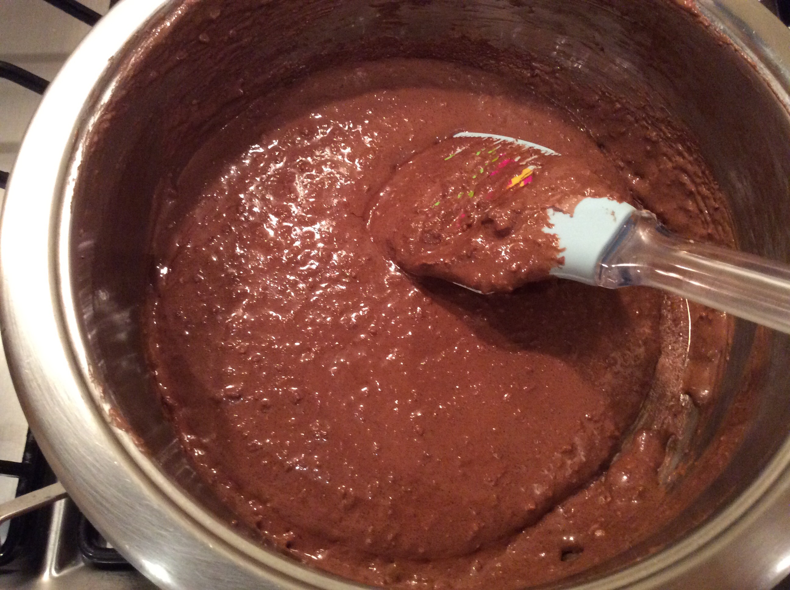 Quando è tutto ben amalgamato trasferisco il composto in una pentola con un fondo spesso e inizio a mescolare