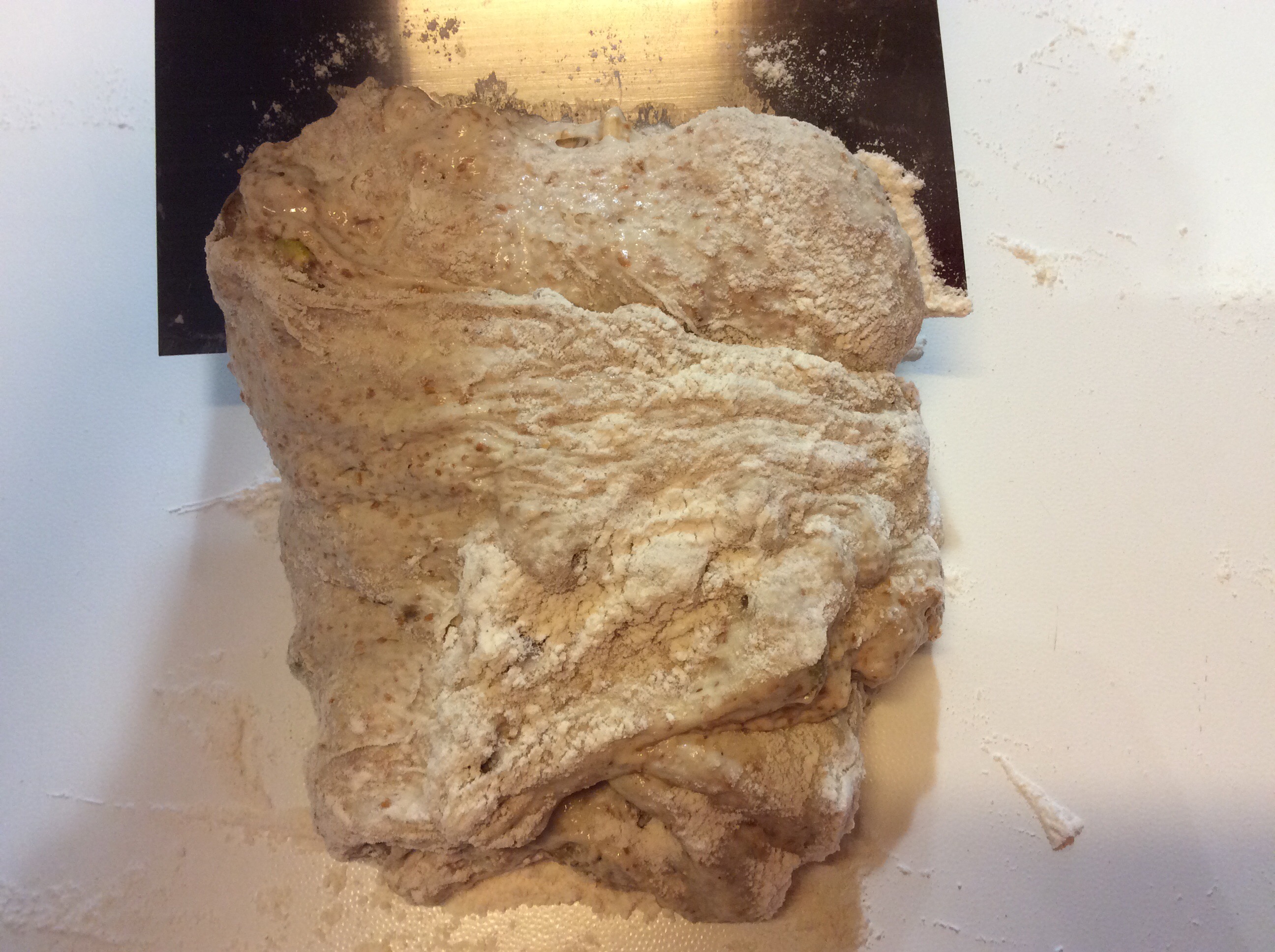 Delicatamente con una spatola rovescio l’impasto sul piano di lavoro infarinato