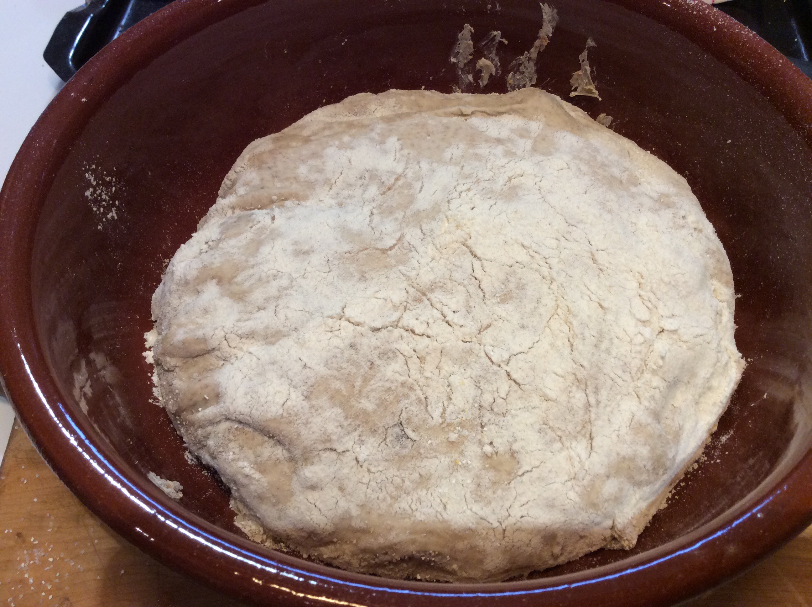 Copro con il canovaccio e lascio riposare 2 ore lontano da correnti d’aria, io essendo inverno l’ho appoggiata su una sedia vicino al calorifero 25/30 gradi