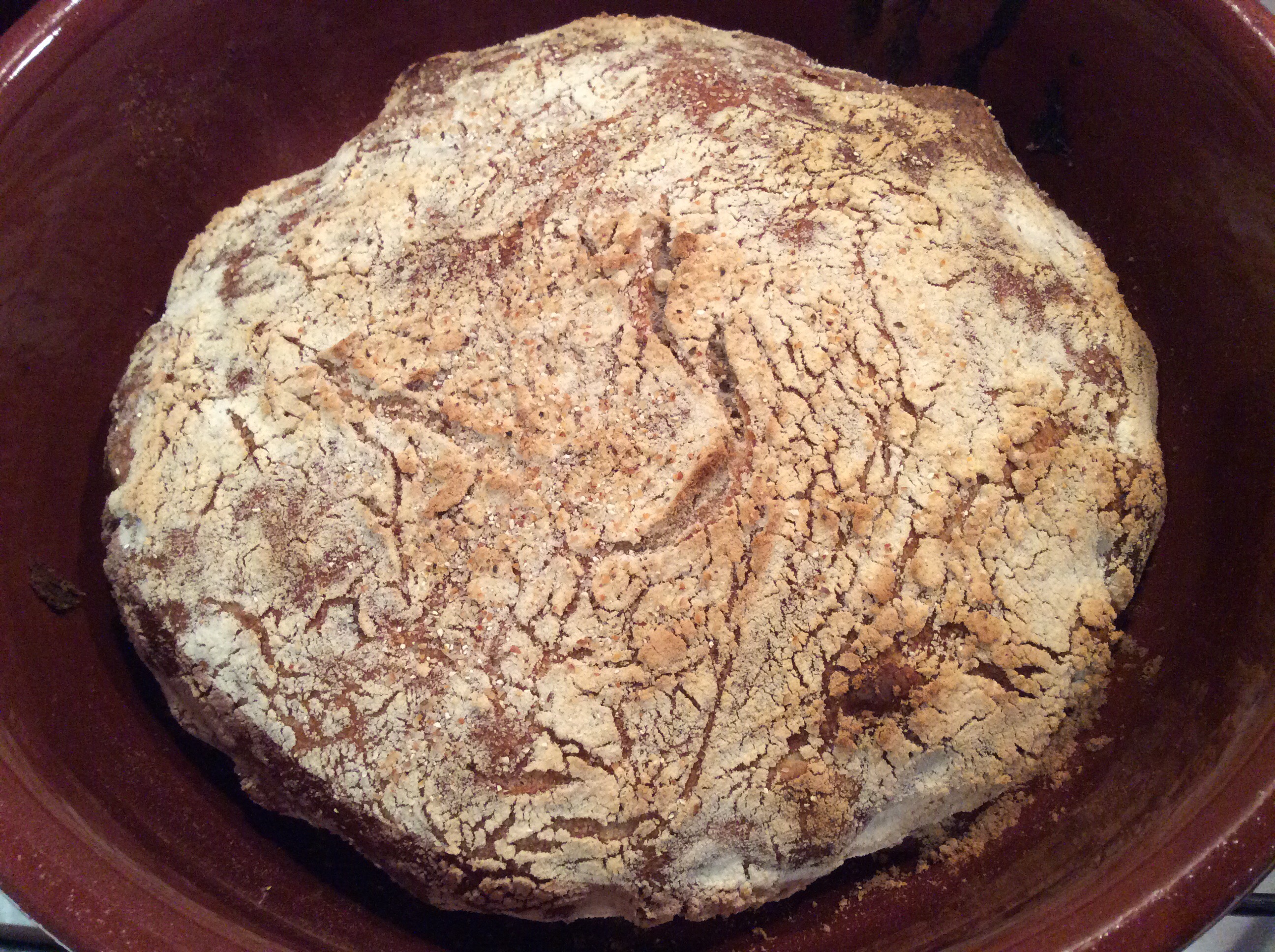 Trascorsa 1 ora e mezza inizio a scaldare il forno fino a 220 gradi con inserita la pentola per la cottura con il coperchio, io ne ho una in terracotta che va benissimo, quando il forno è in temperatura tolgo la pentola dal forno facendo molta attenzione e tolgo il coperchio