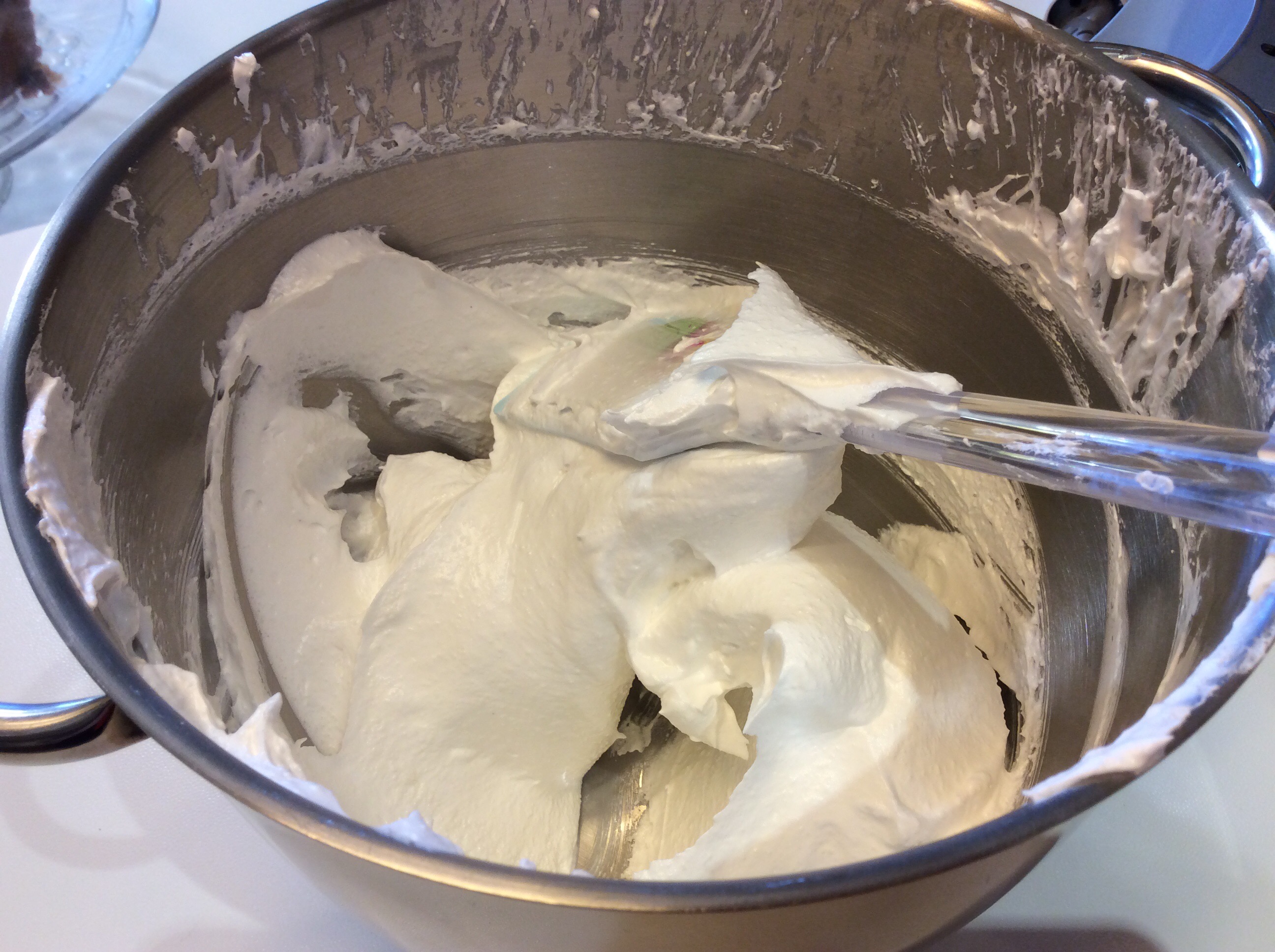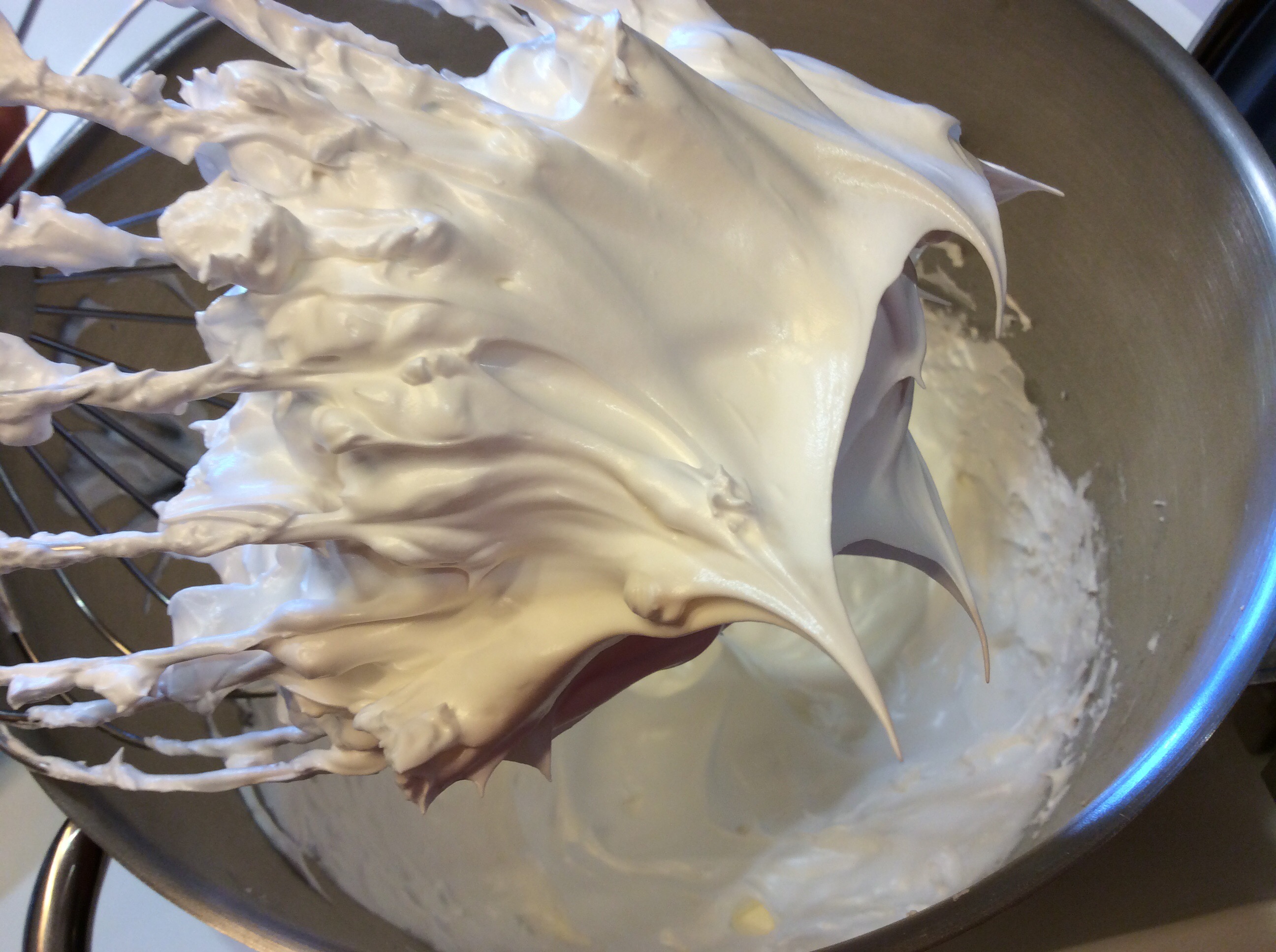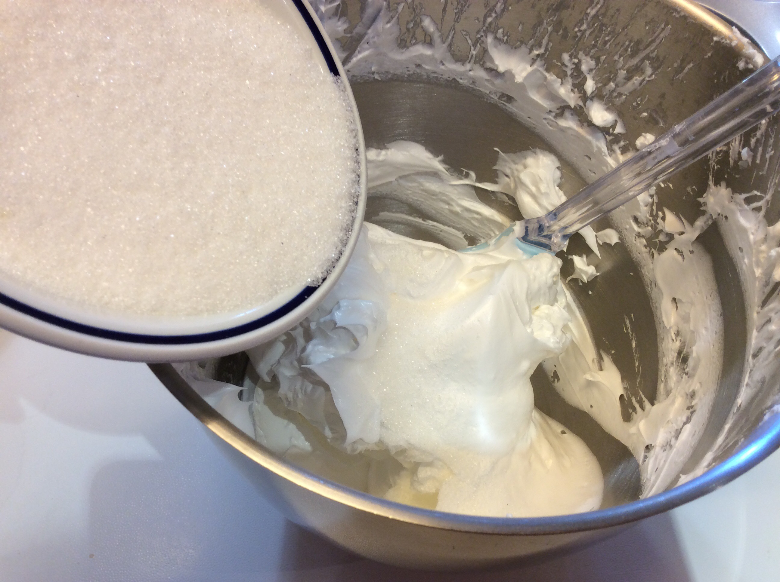 Mescolo con movimento deciso dal basso verso l’alto finché lo zucchero è incorporato e il composto è lucidissimo ma senza smontarlo