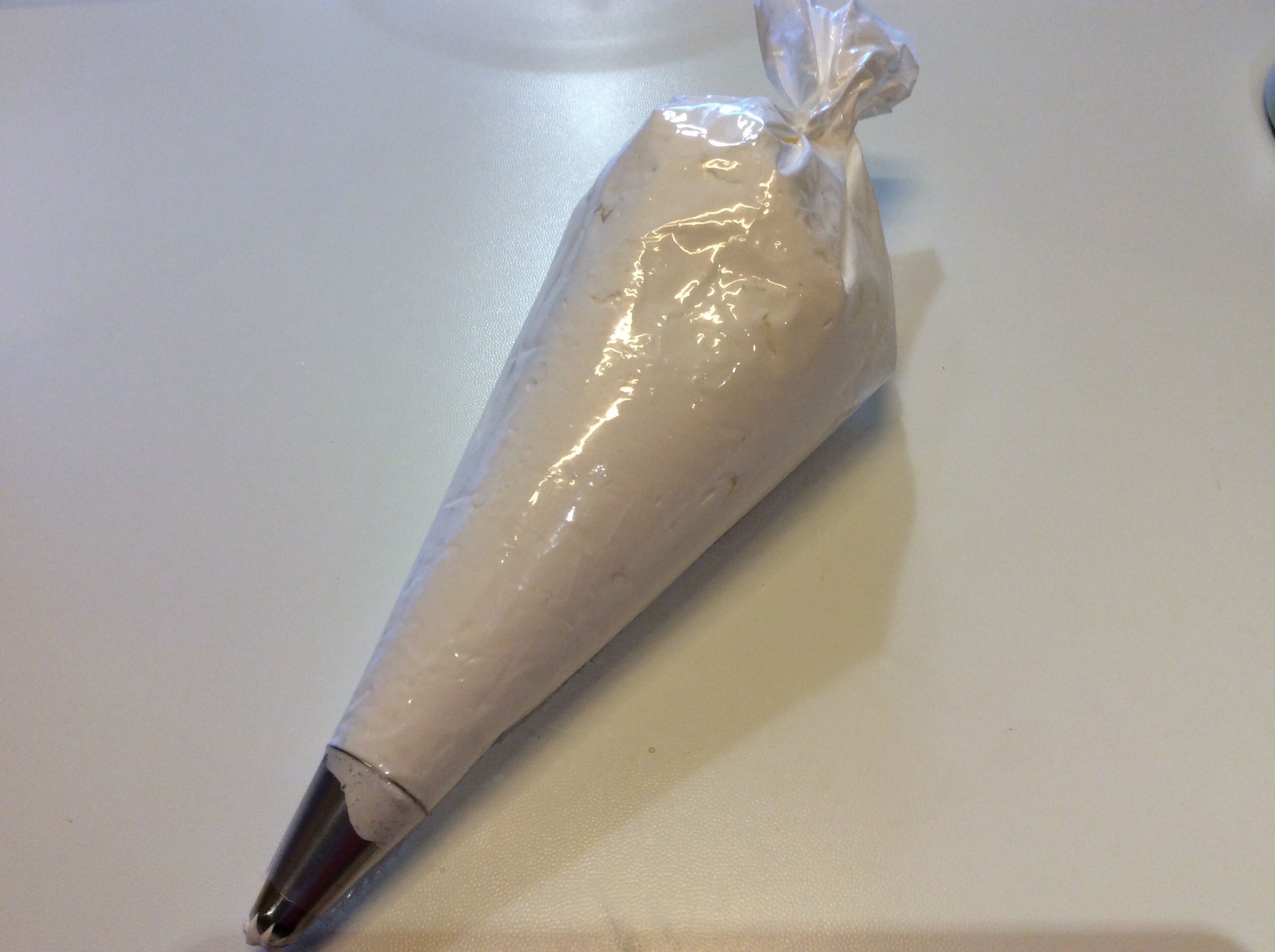 Verso la meringa in un sac a poche con un beccuccio a stella