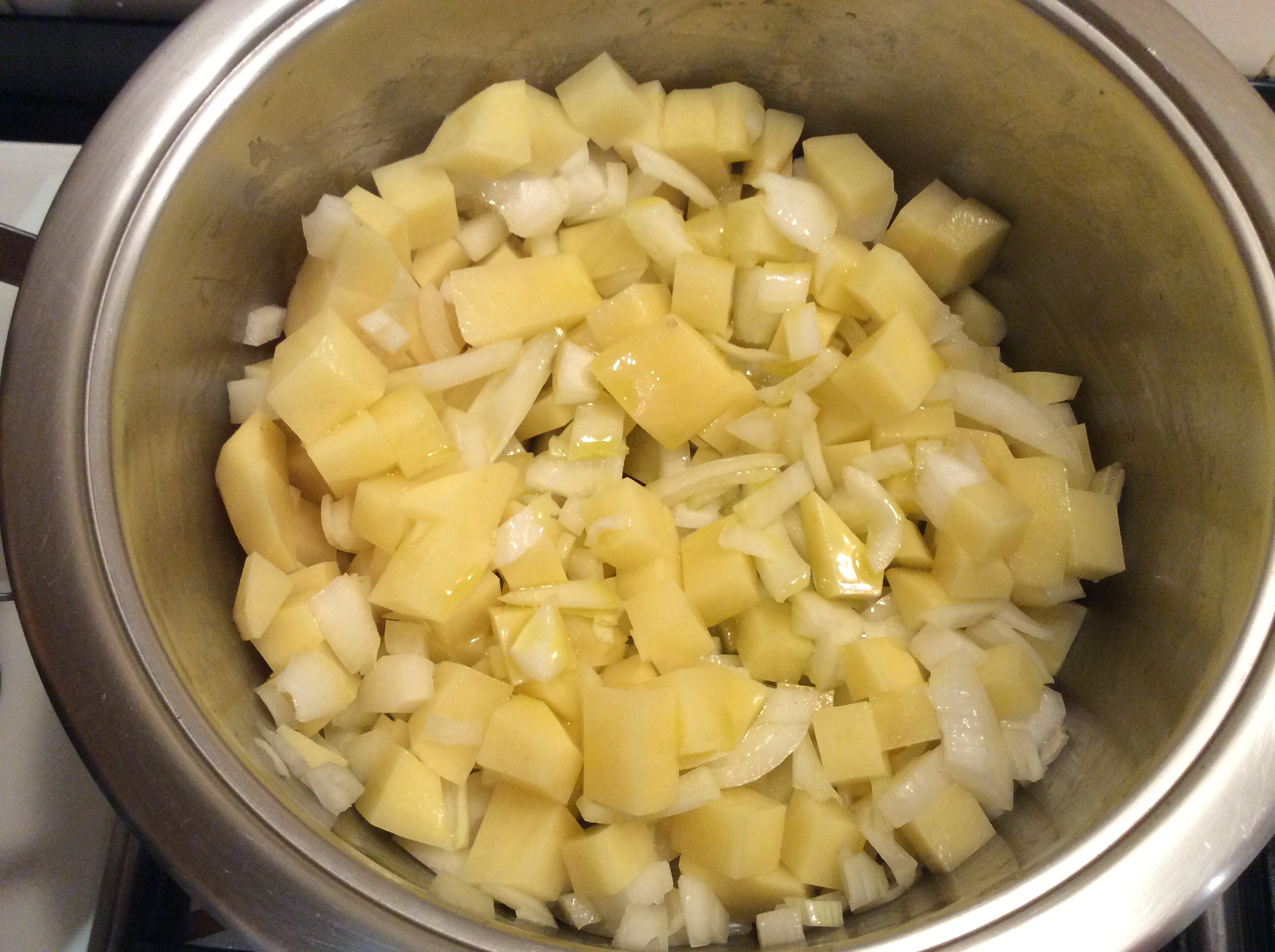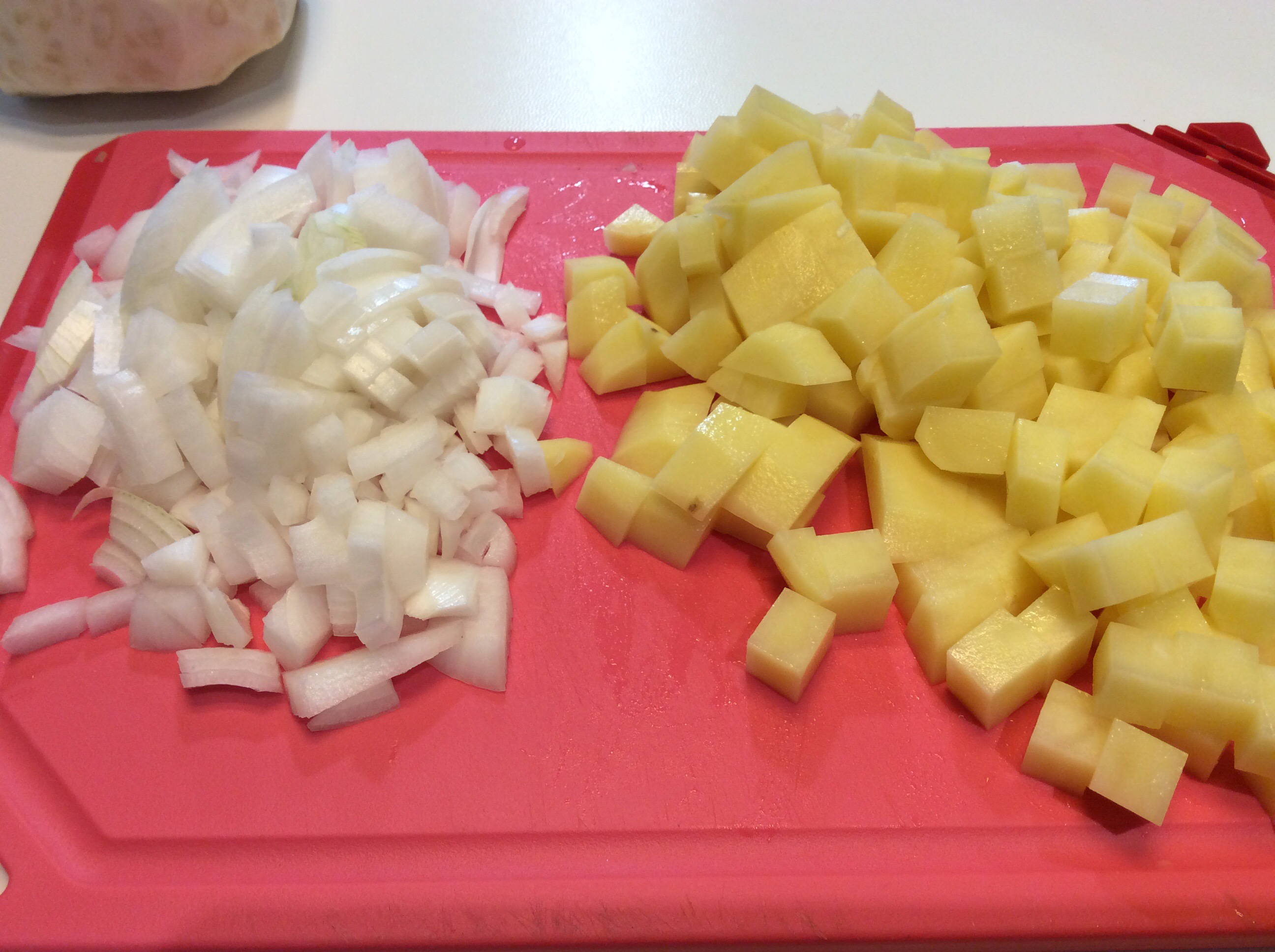 Taglio la cipolla e la patata a cubetti