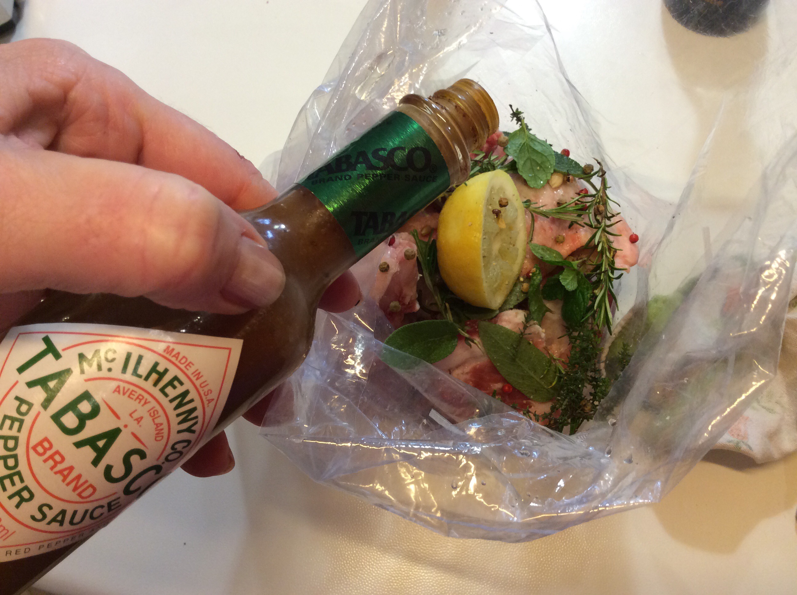Alcune gocce di Tabasco, le dosi sono indicative, sta a voi decidere se vi piace più o meno piccante