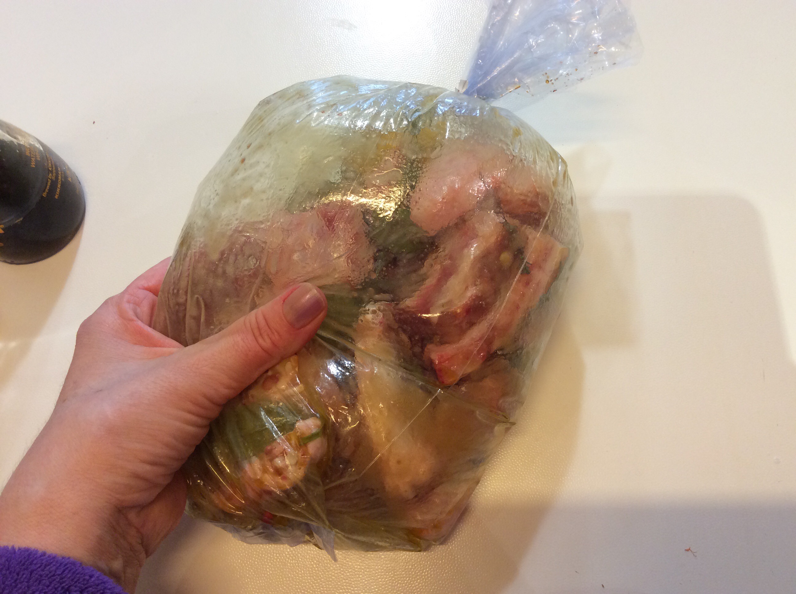 Massaggio bene muovendo il sacchetto, mettetelo a riposare in frigorifero e ogni tanto ricordatevi di agitare e massaggiare il sacchetto in questo modo gli aromi si mischieranno conferendo alla carne un sapore fantastico