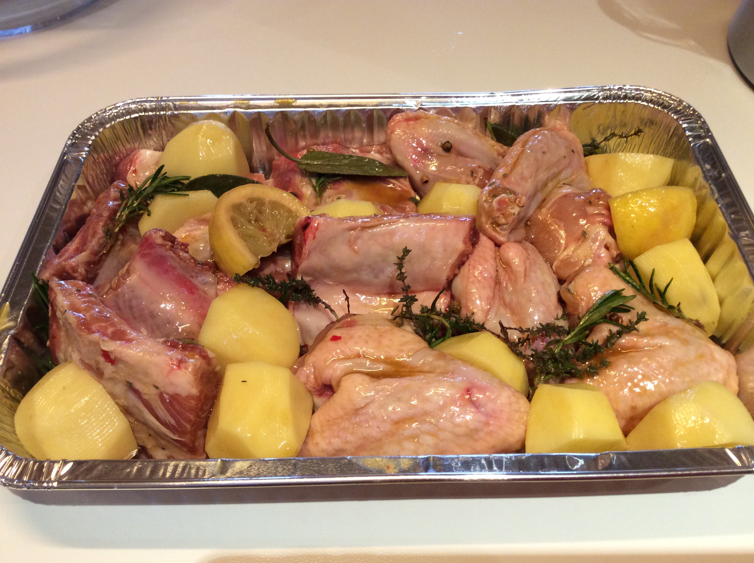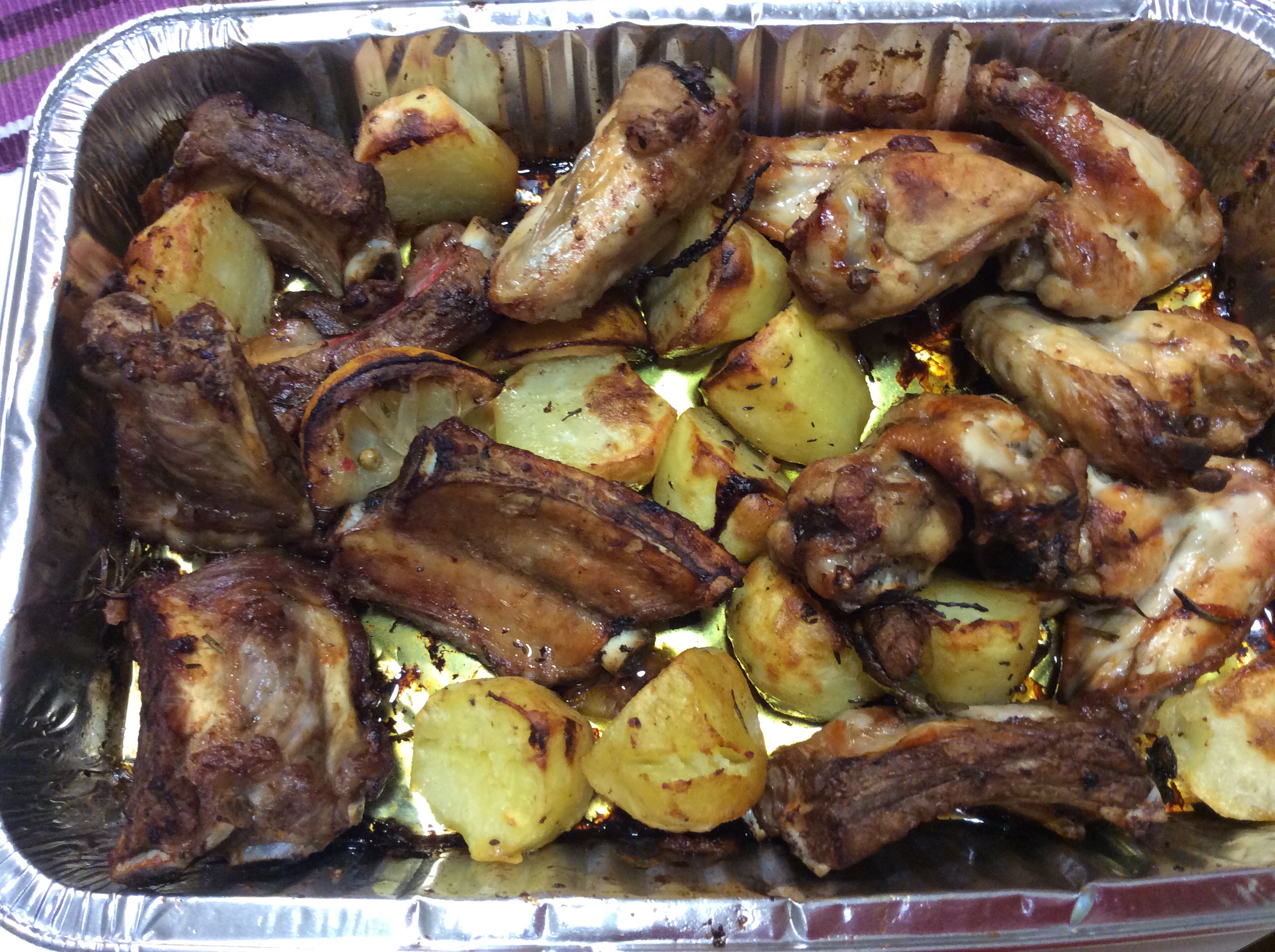 COSTINE DI MAIALE ALI DI POLLO E PATATE AL FORNO MARINATE