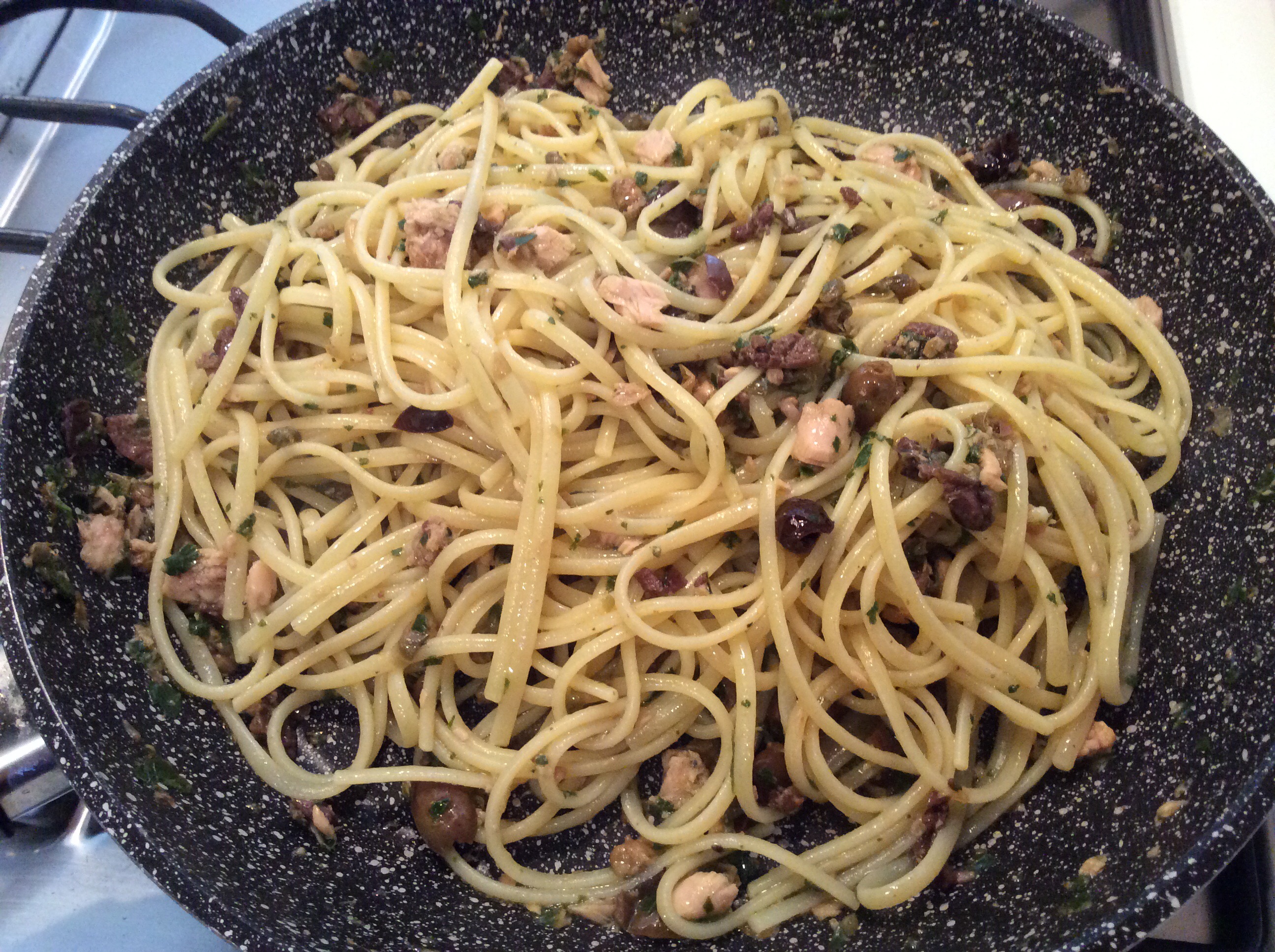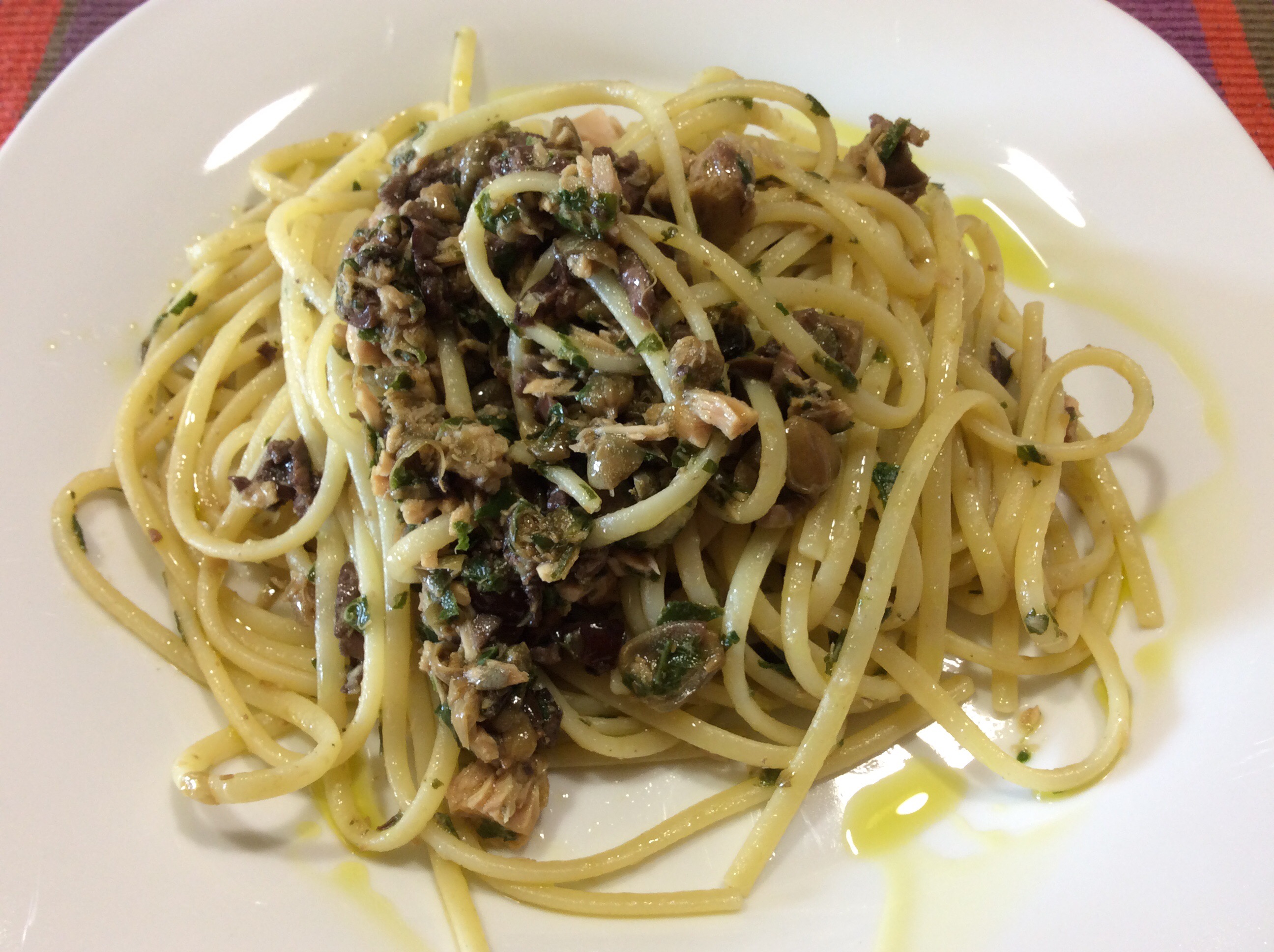 LINGUINE CON OLIVE TONNO E CAPPERI
