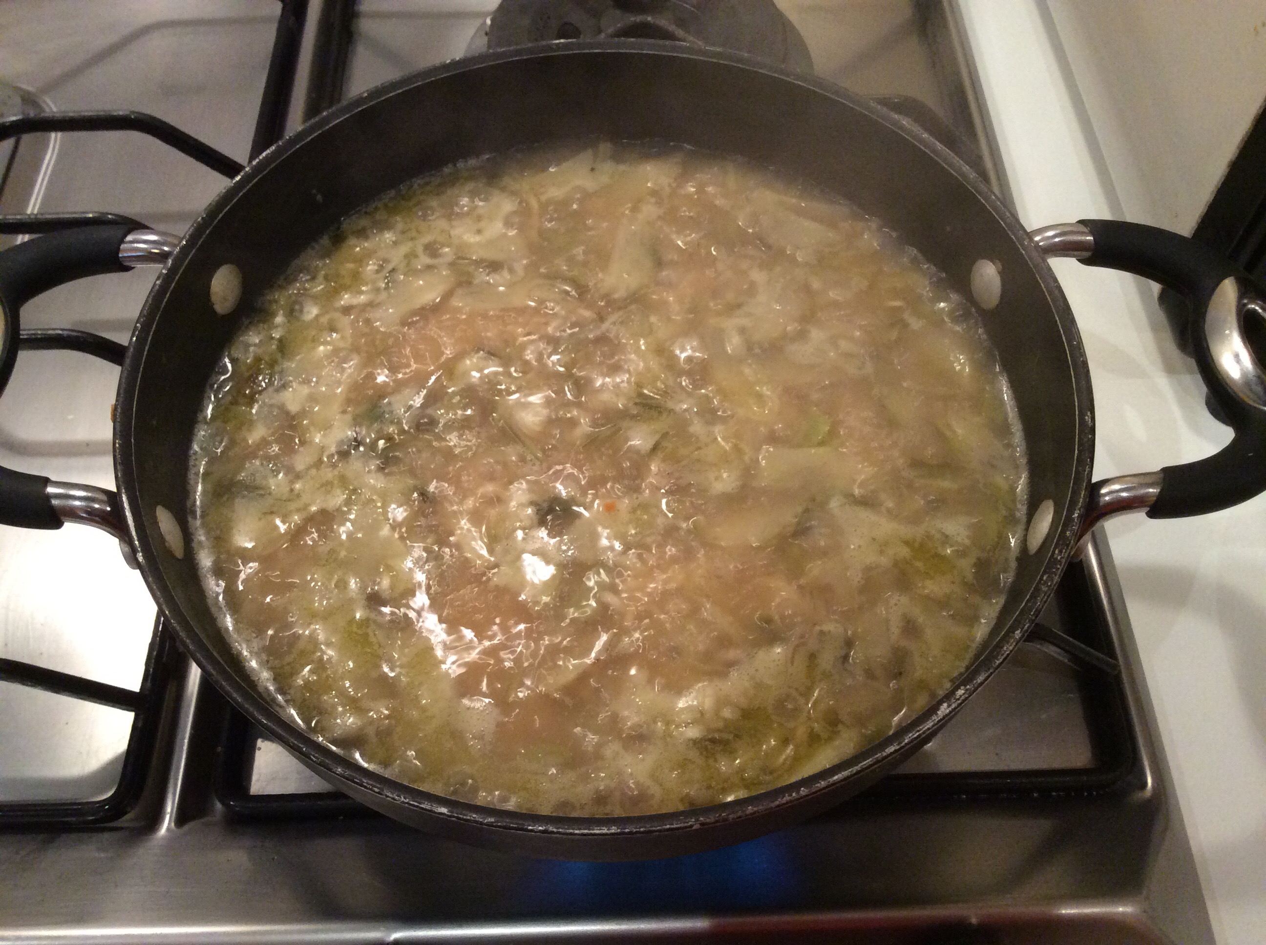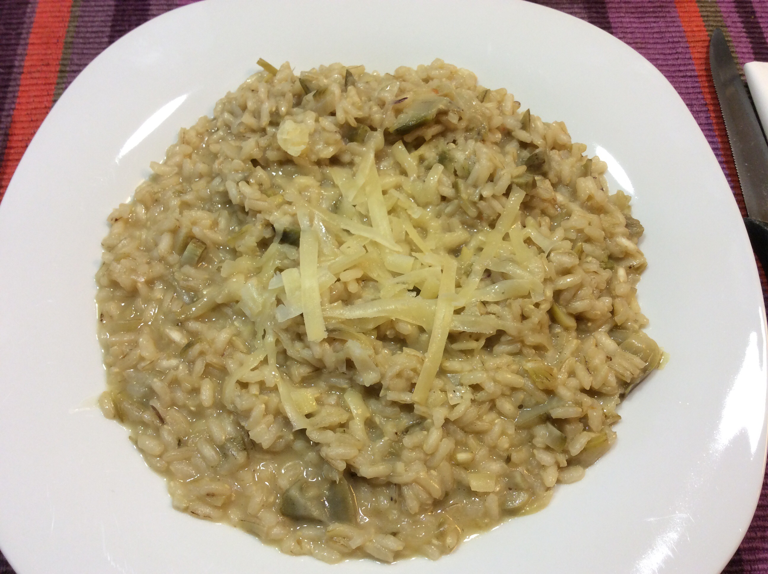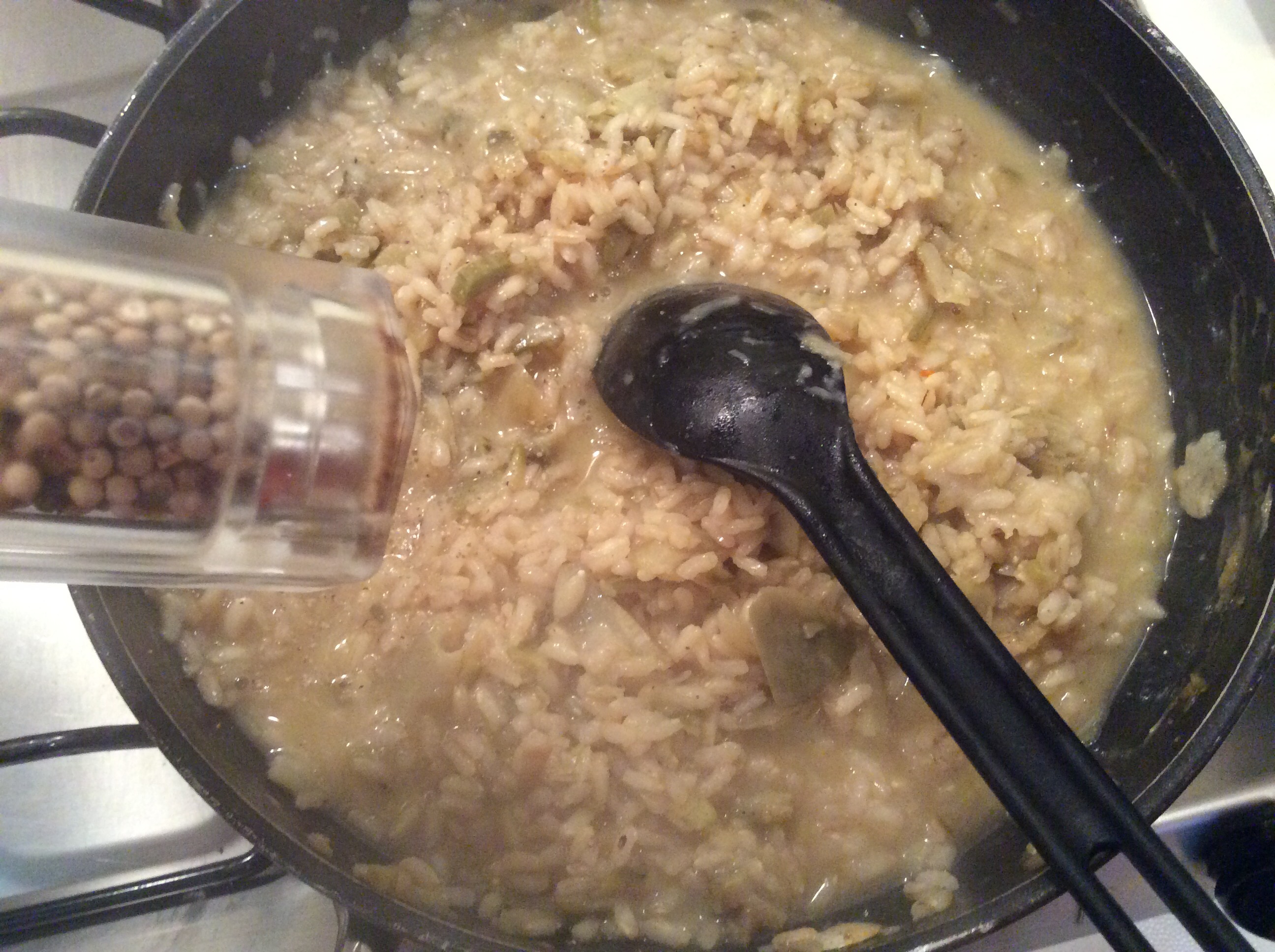 Quando non sento più il profumo del vino aggiungo pian piano il brodo bollente continuando a mescolare