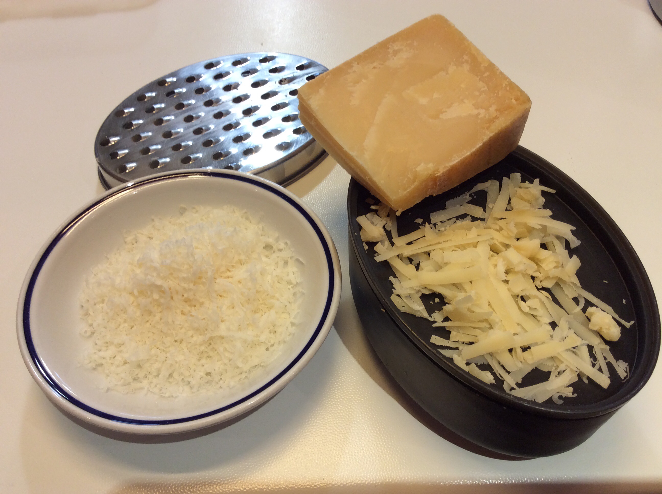 Con una grattugia a fori larghi grattugio il formaggio stagionato