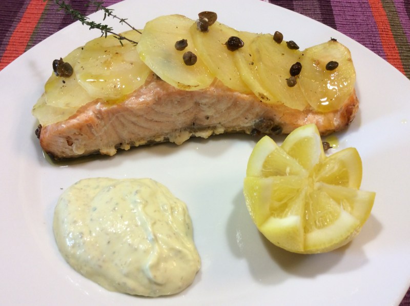 Non cuocete troppo il salmone altrimenti diventa stopposo,io l’ho servito accompagnato da una maionese bernese