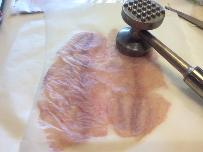 Copro con un altro foglio di carta forno e batto delicatamente i filetti