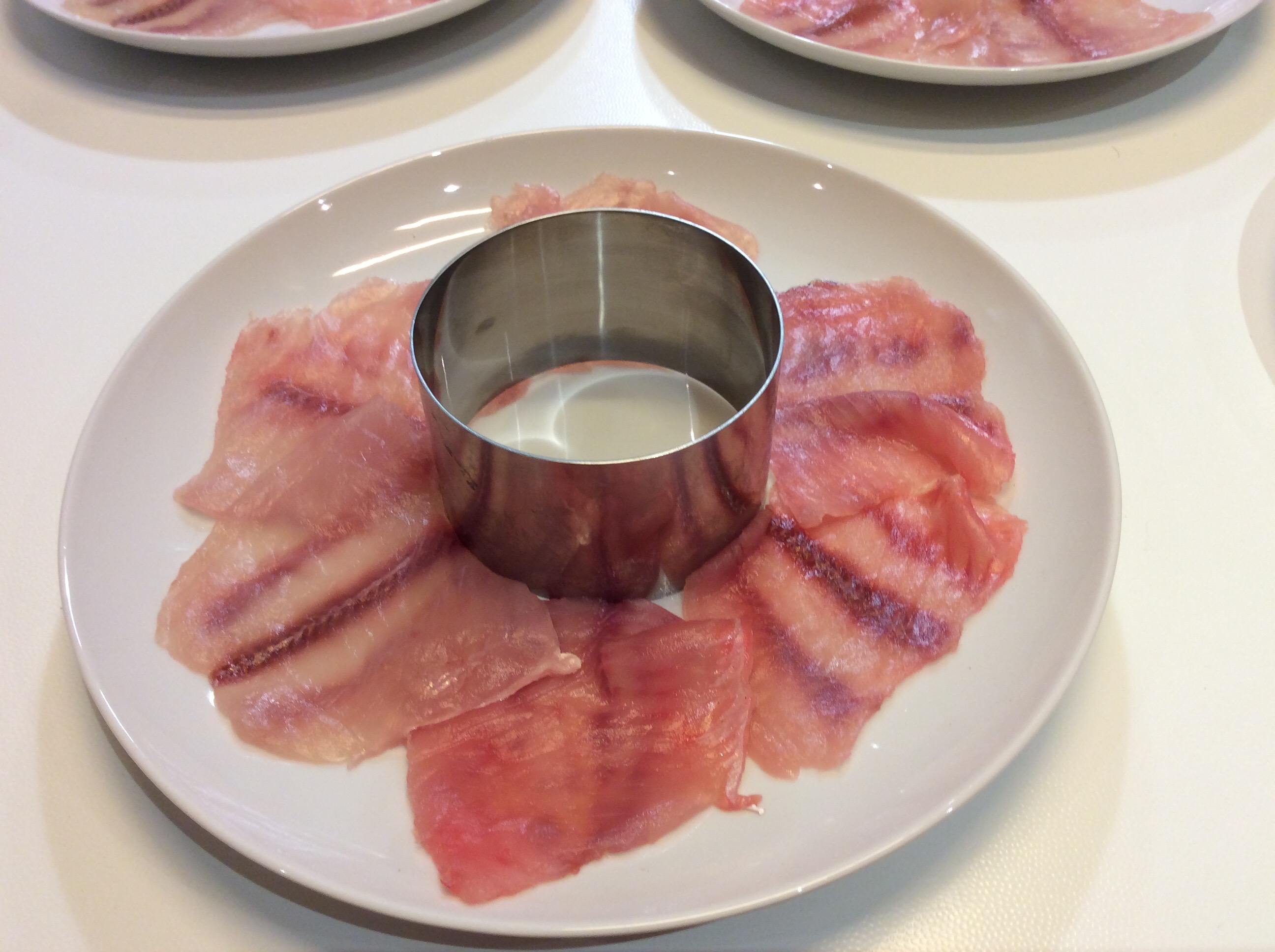 Io ho preparato ogni porzione con due filetti, li ho sistemati nel piatto lasciando uno spazio al centro