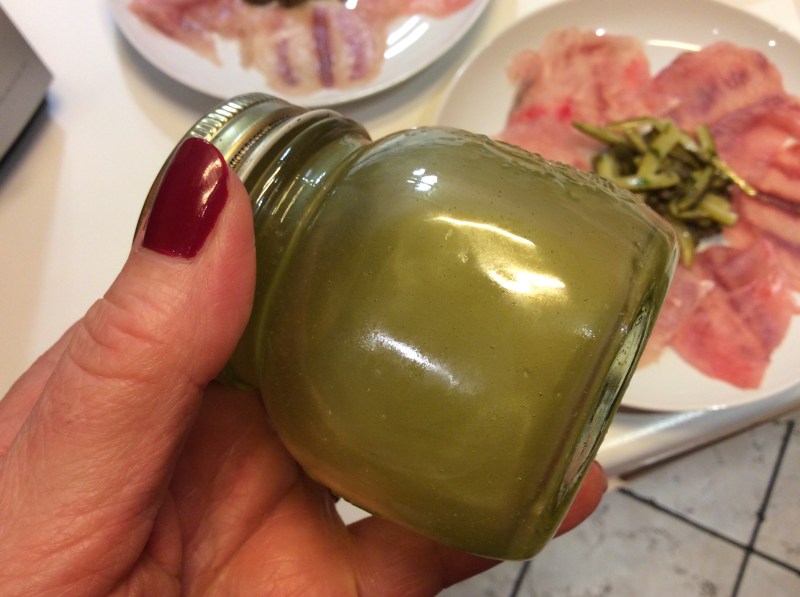 In un vasetto ho versato dell’olio extravergine e mezzo limone, un pizzico di sale e pepe, ho chiuso con il tappo e agitato velocemente, si crea una emulsione densa