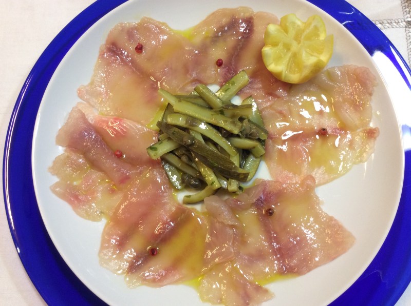 Ho la fortuna di avere un mio amico pescatore che mi porta il pesce del Lago di Garda specificatamente di Gargnano direttamente dalla barca a casa, con questi splendidi filetti ho deciso di preparare questo delicatissimo carpaccio.Per evitare rischi, quando si consuma il pesce crudo va sempre abbattuto o congelato per almeno 4 giorni per evitare il batterio Anisakis
