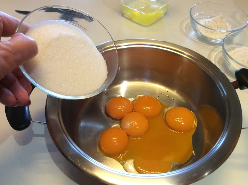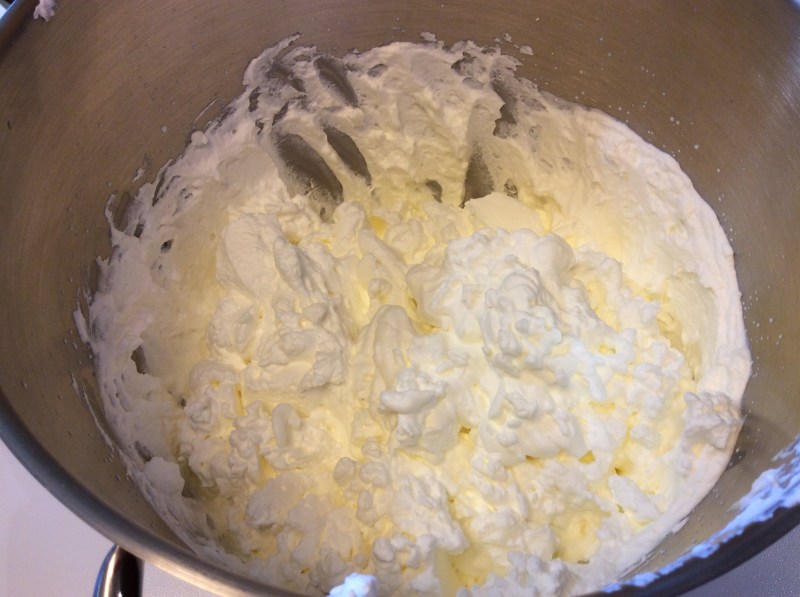 Monto la panna ben fredda con due cucchiai di zucchero a velo