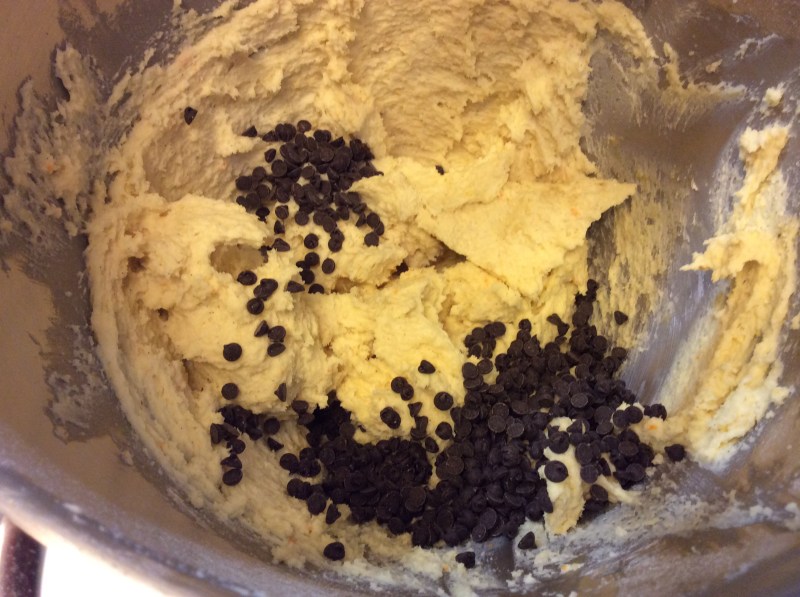 Quando tutti gli ingredienti sono amalgamati aggiungo le gocce di cioccolato e lavoro un minuto