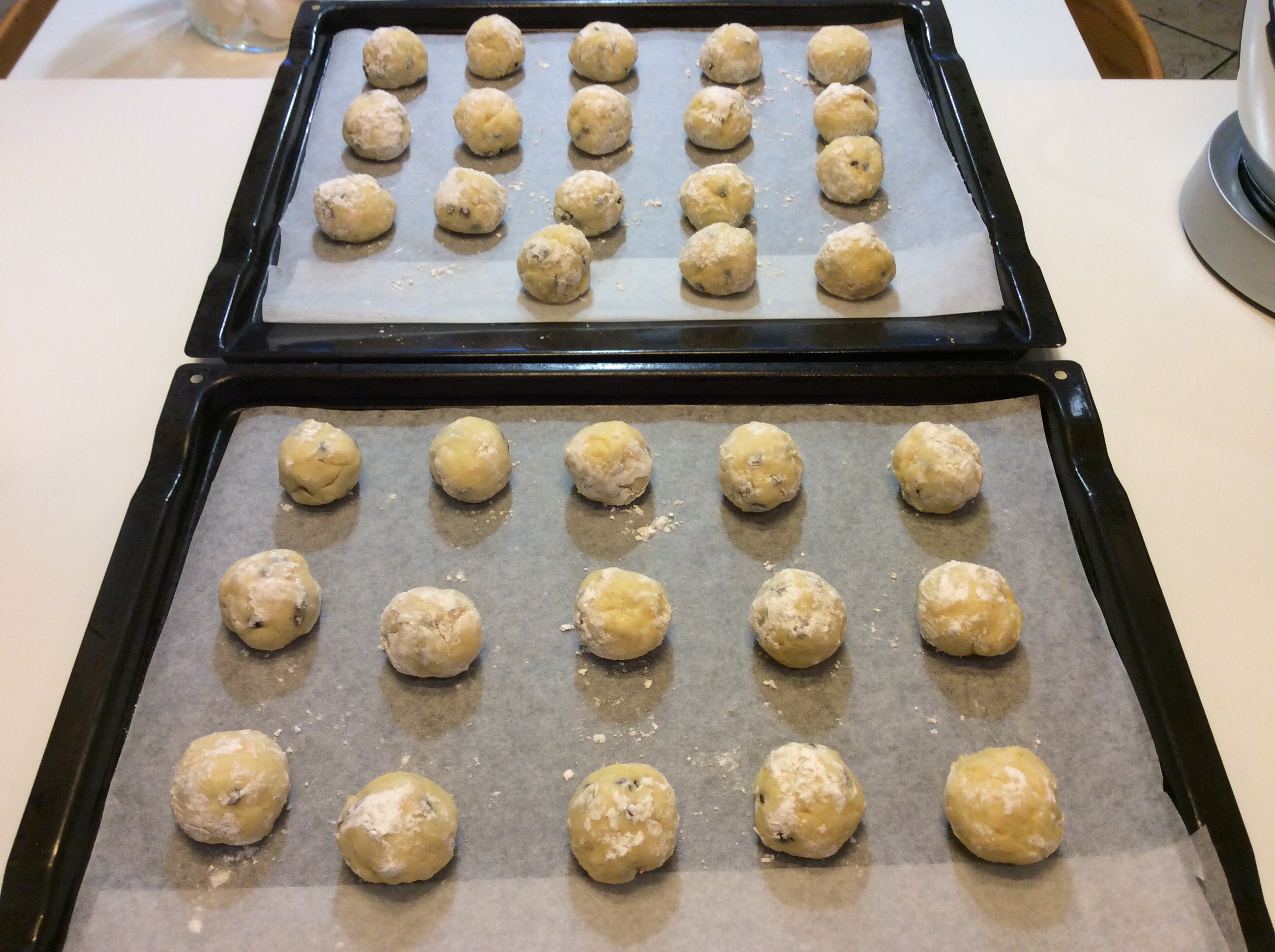 Le appoggio sulle placche ricoperte di carta  forno tenendole distanziate fra loro perchè in cottura crescono
