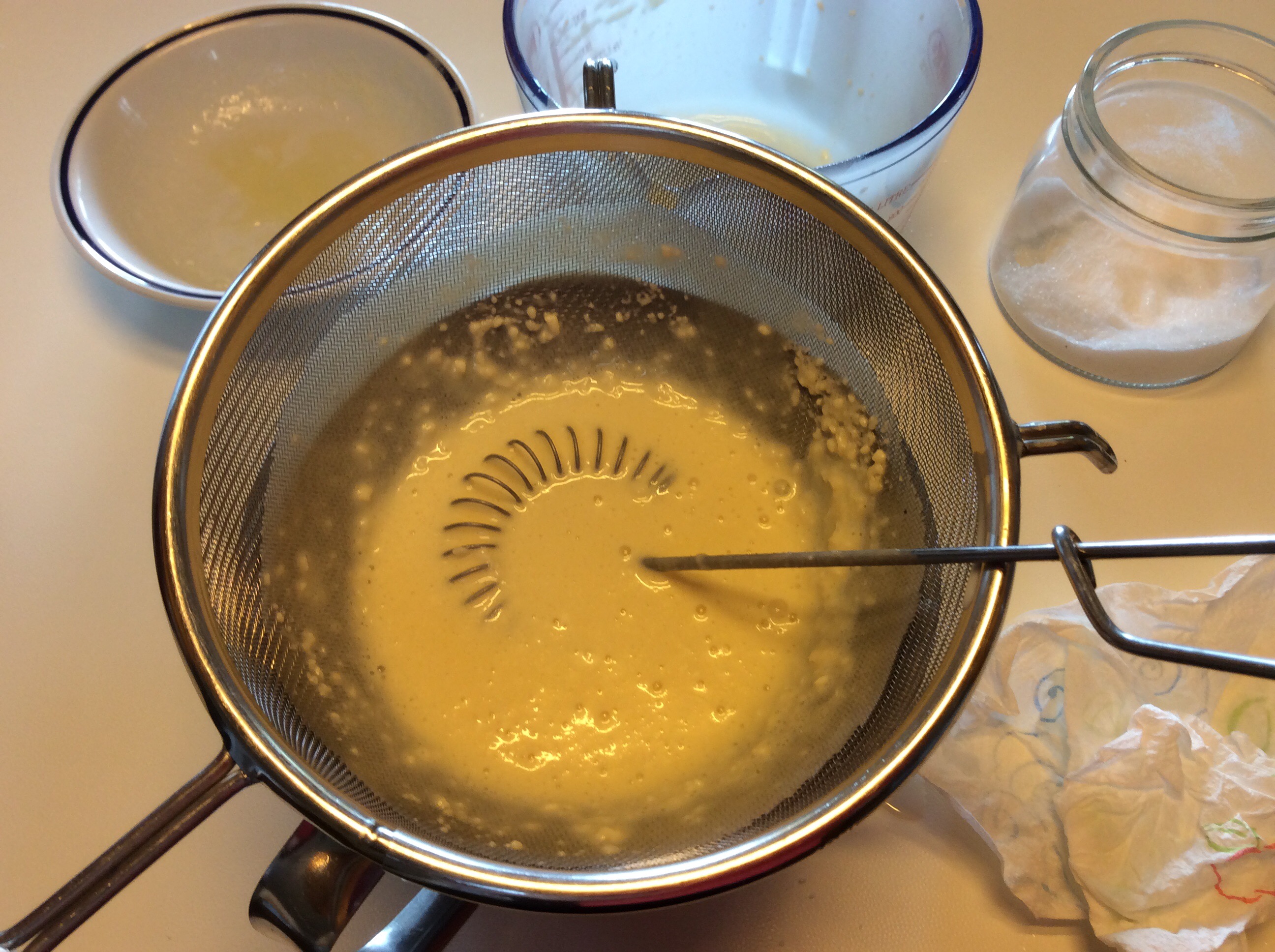 Filtro la pastella perchè sia perfettamente vellutata e la lascio riposare mezz’ora