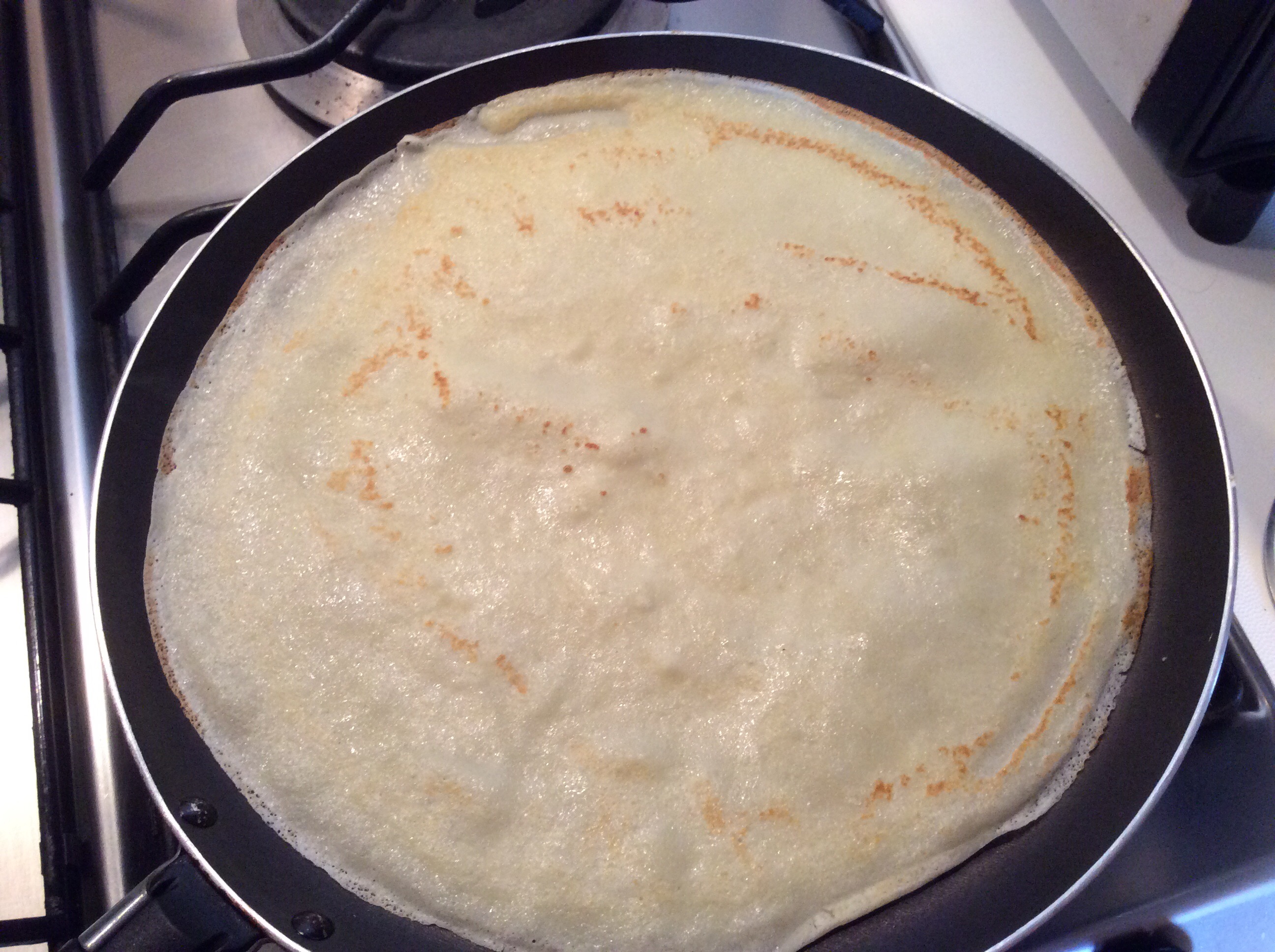 Nel pentolino delle crepes verso la pastella, cuocio da un lato e lascio colorire anche dall’altro