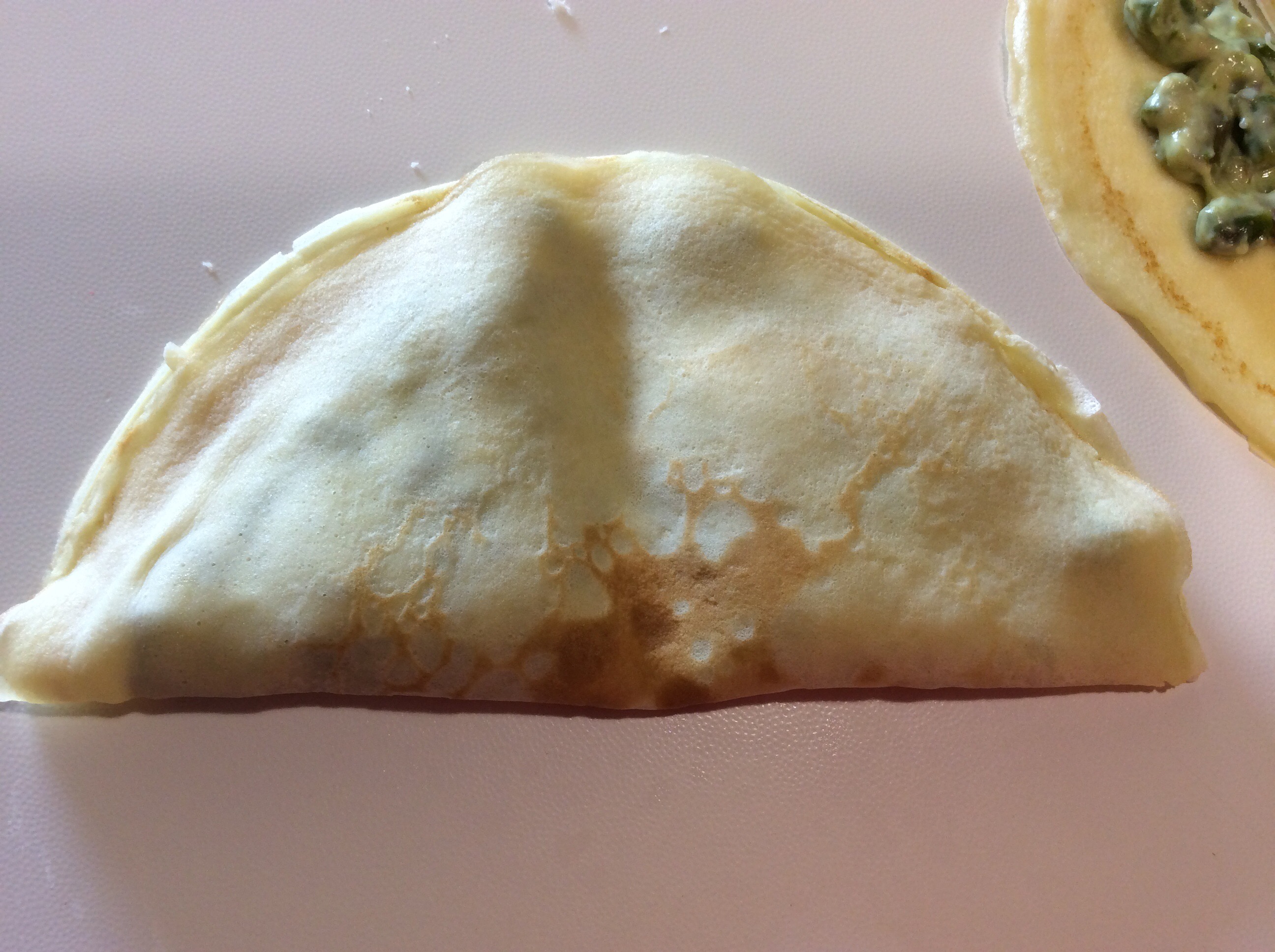 Ripiego le crepes a metà premendole leggermente al centro
