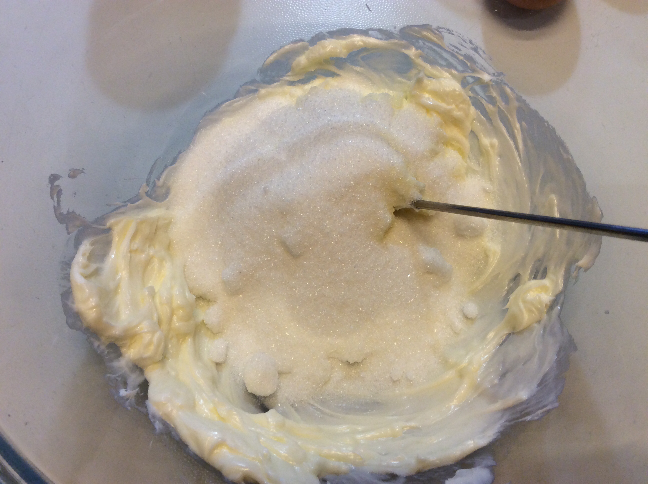 In una ciotola lavoro con una frusta elettrica oppure a mano il burro morbido e lo zucchero