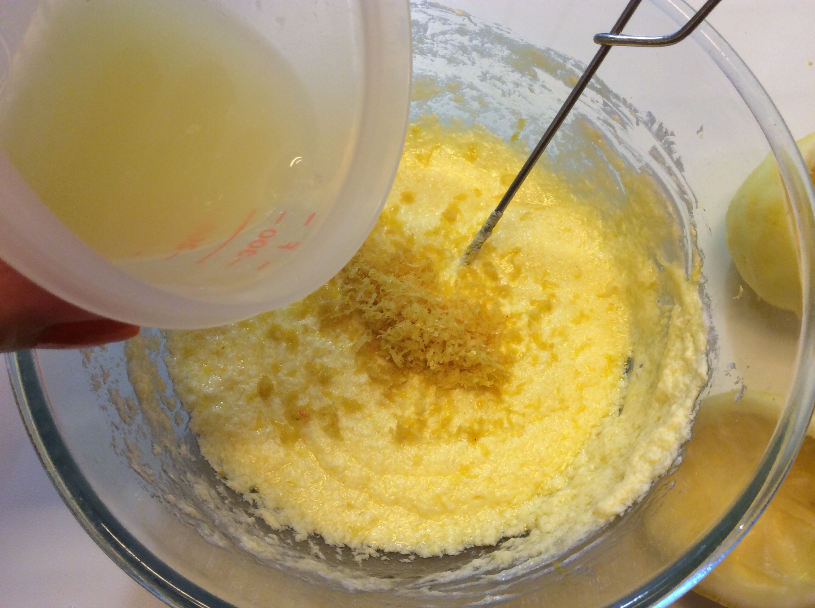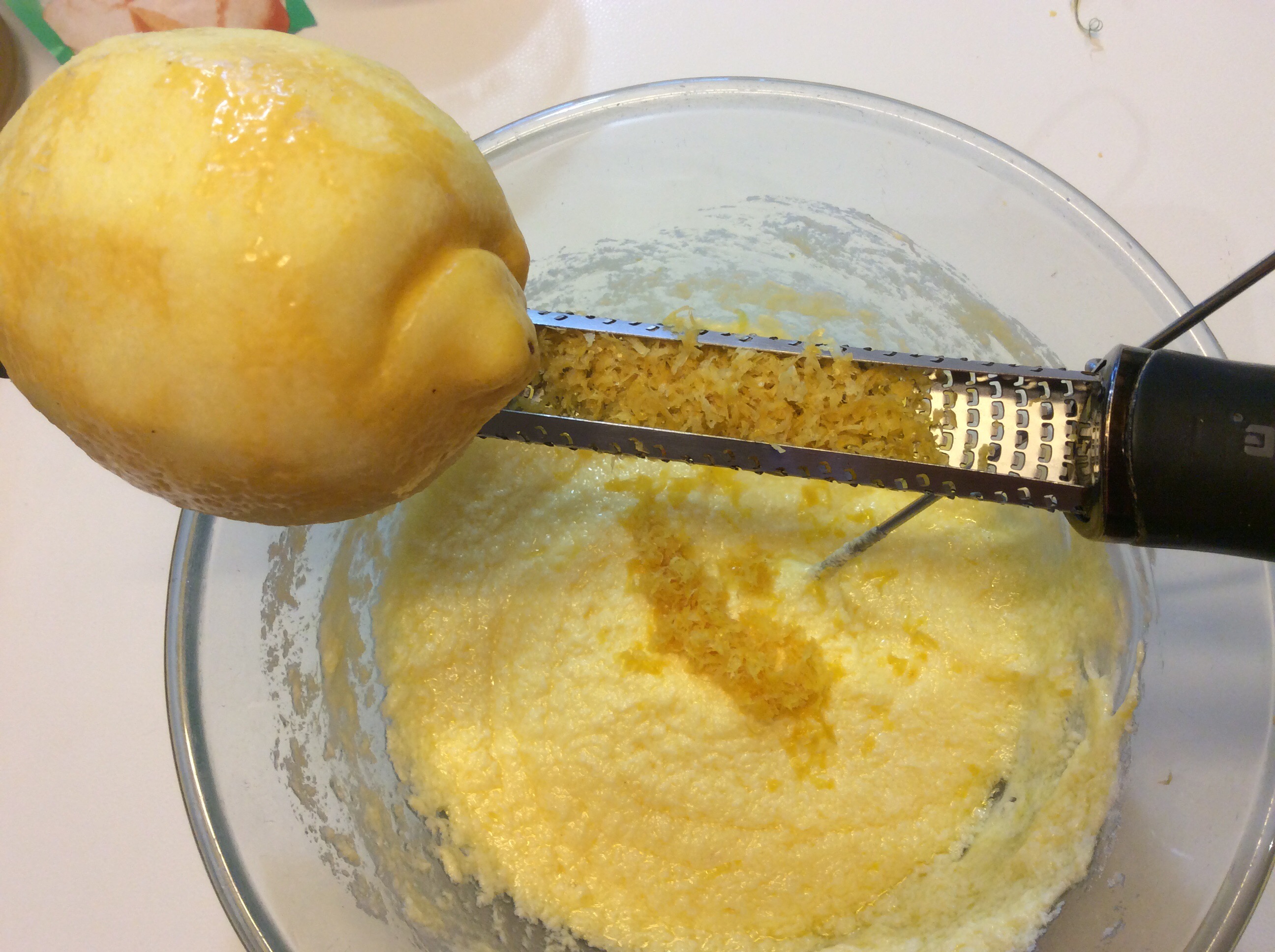 Unisco la buccia grattugiata di due grossi limoni, solo la parte gialla