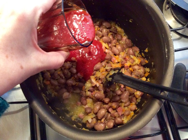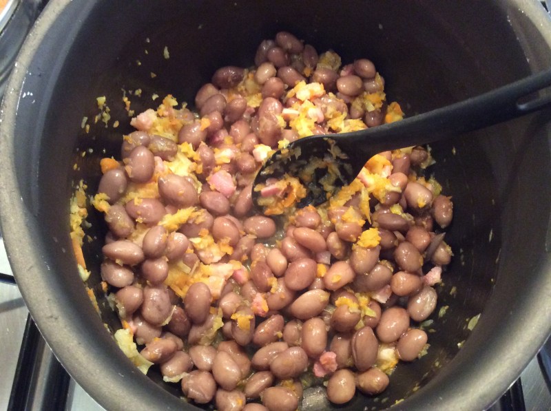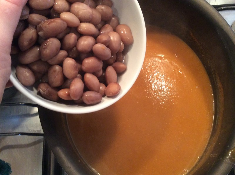 Diluisco con l’acqua di cottura dei fagioli o brodo vegetale circa 1 litro e mezzo