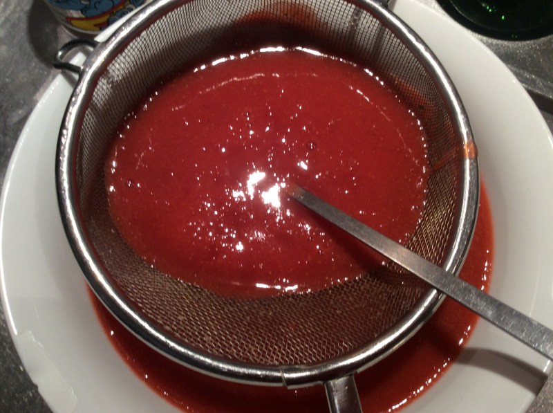 Filtro la salsa ottenuta attraverso un colino la metto ancora 5 minuti nel microonde