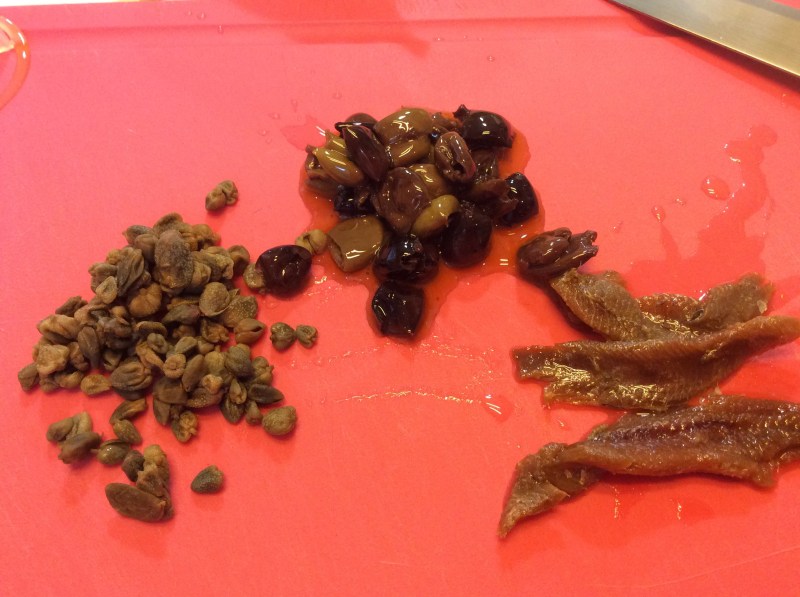 Metto in ammollo i capperi per dissalarli, quindi li strizzo