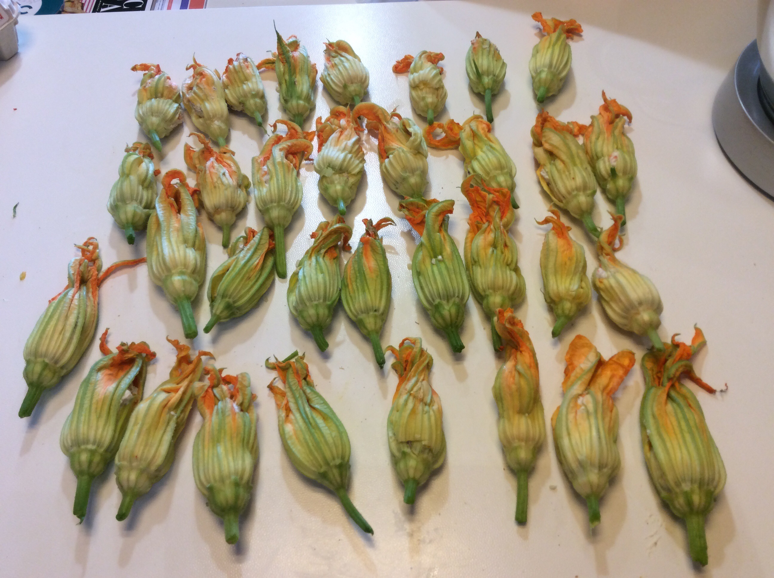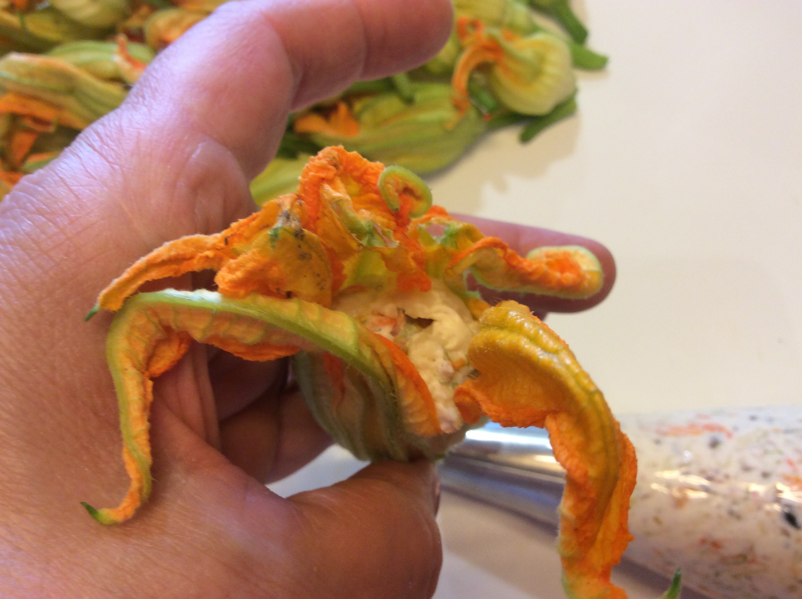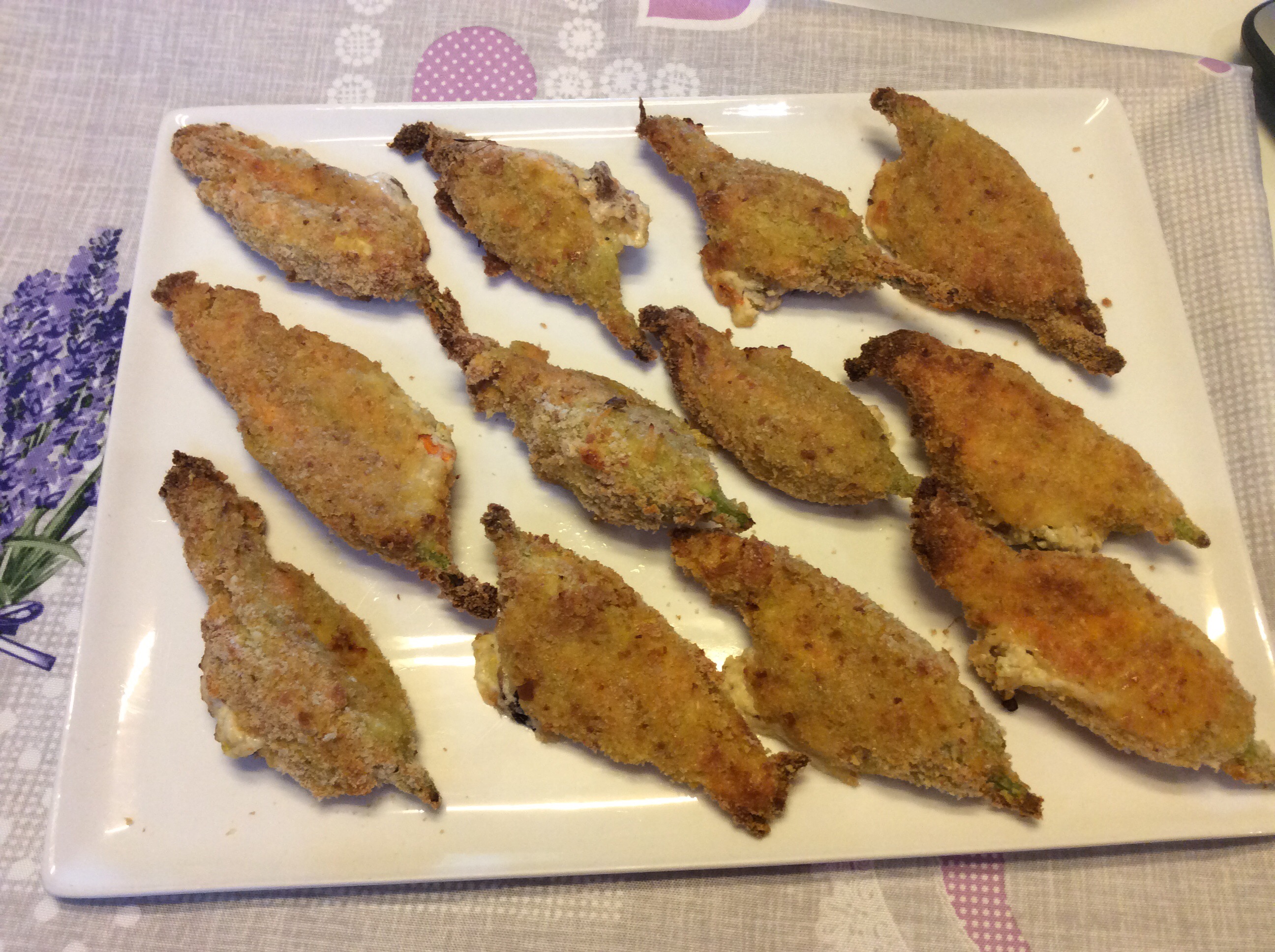 Mi hanno regalato degli splendidi e delicatissimi fiori di zucchine, bisognerebbe raccoglierli e prepararli subito perchè si deteriorano velocemente, questa ricetta è molto gustosa anche se i fiori non sono fritti restano comunque croccanti e buonissimi