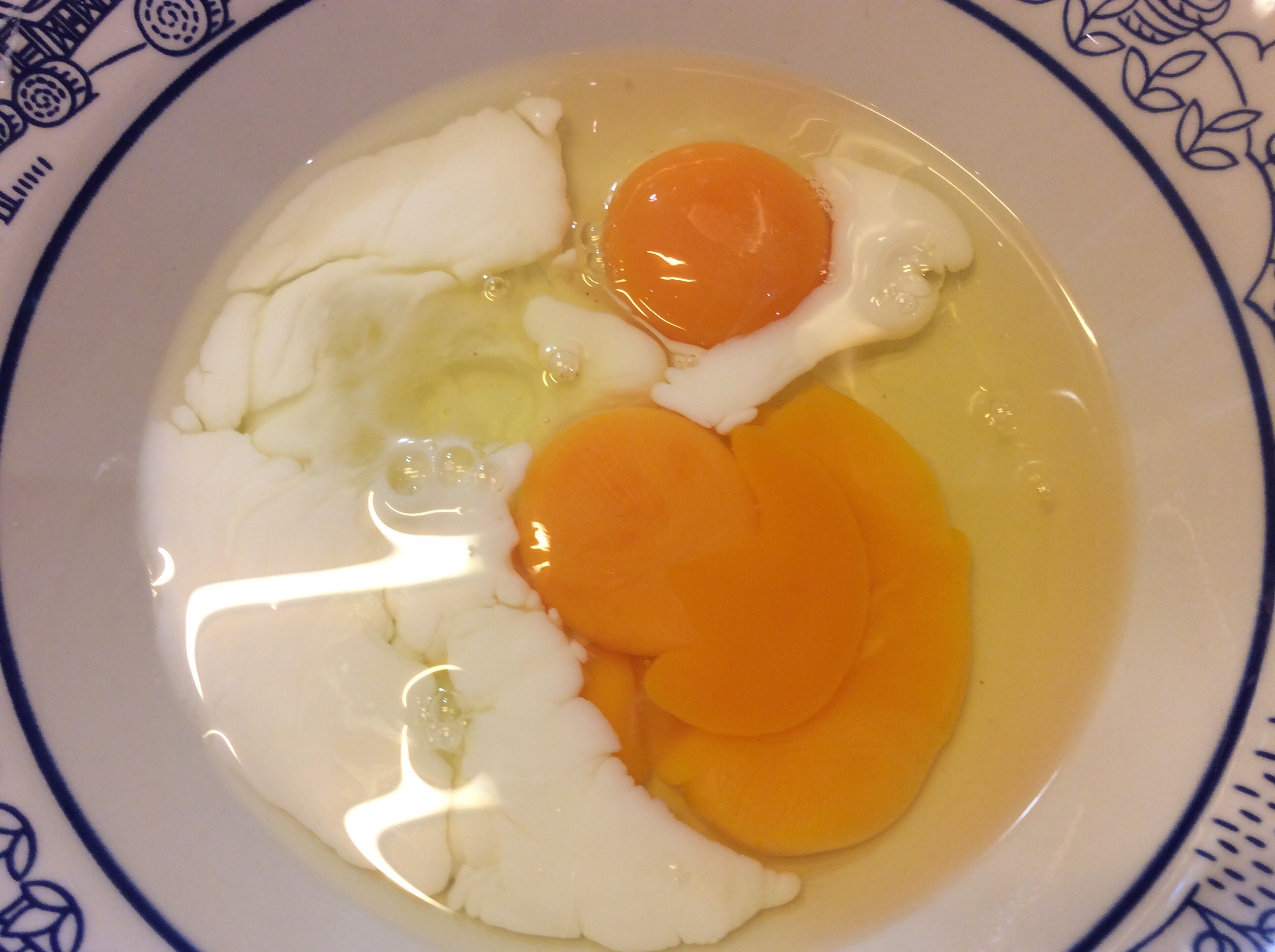 In una ciotola sguscio 4 uova intere con mezzo bicchiere di latte e li batto con una forchetta