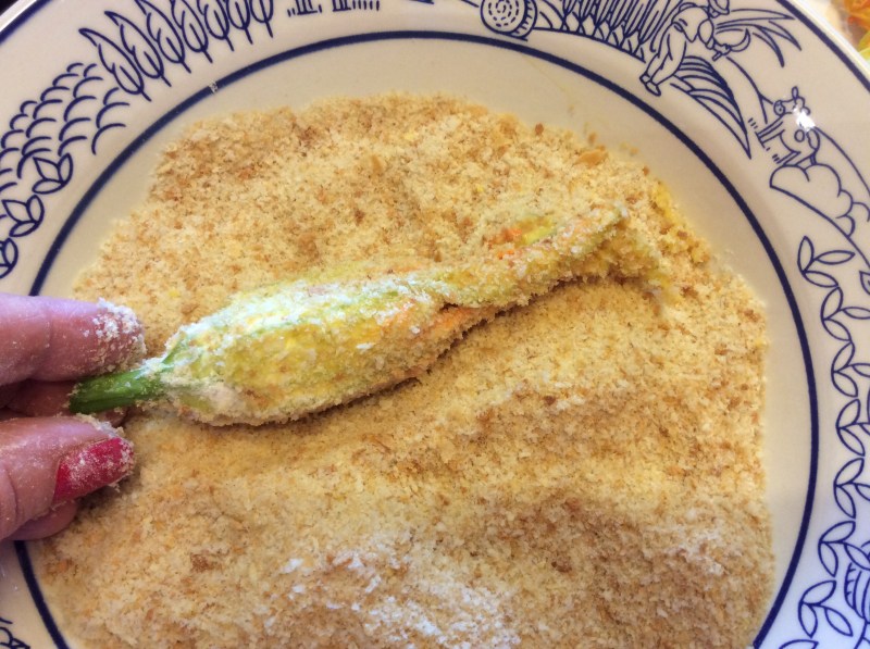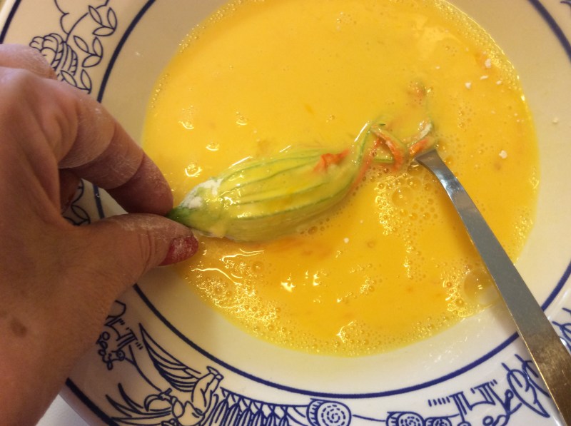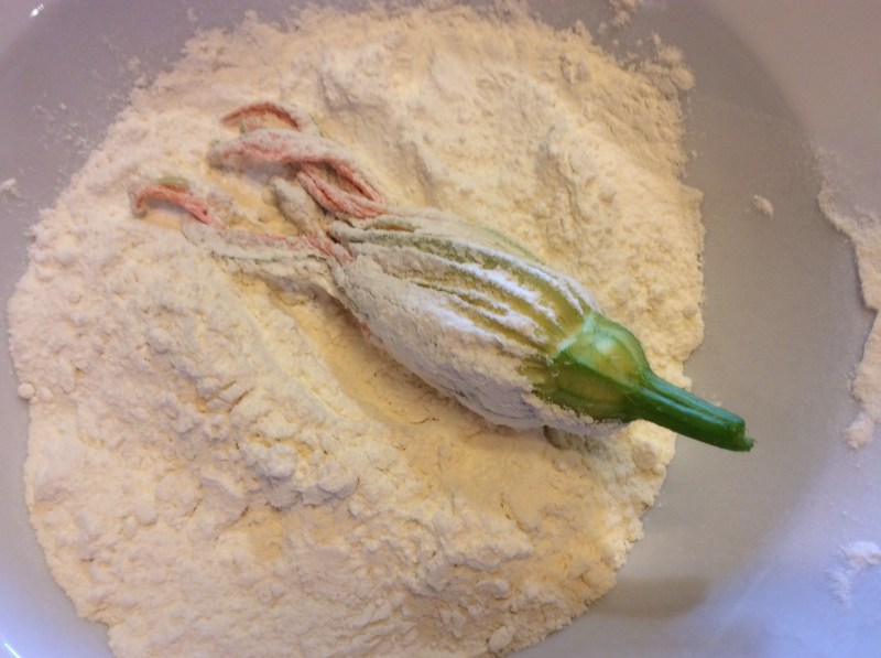 Con questa dose ne ho farciti 33, in una ciotola verso della farina bianca e avvolgo completamente i fiori
