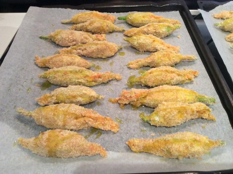 Preparo le teglie rivestite di carta forno e le ungo leggermente e dispongo i fiori, sopra verso ancora un goccio di olio e inforno a 180 gradi per 25/30 minuti