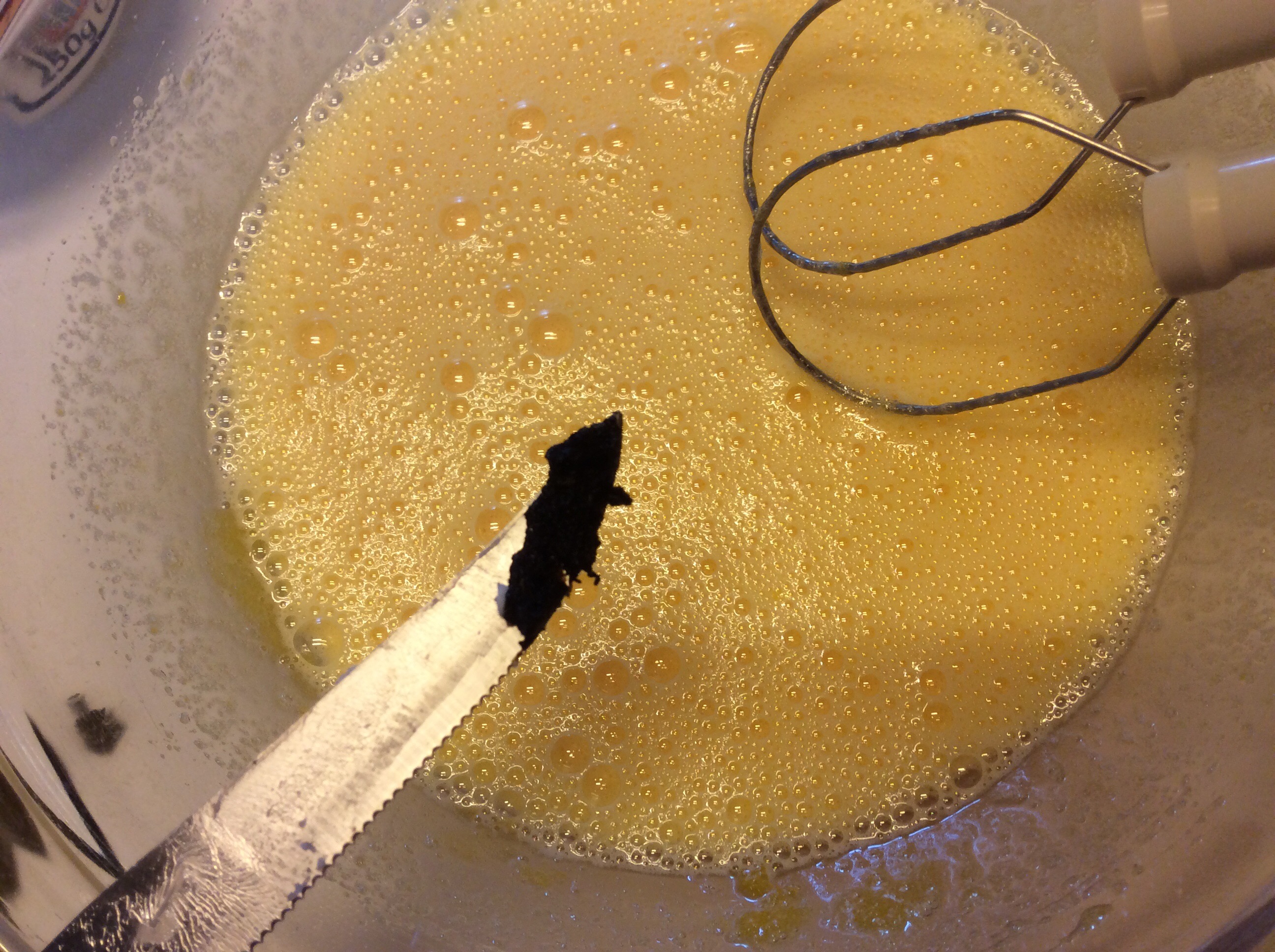 Devono diventare bianchi e spumosi, aggiungo i semi della bacca di vaniglia