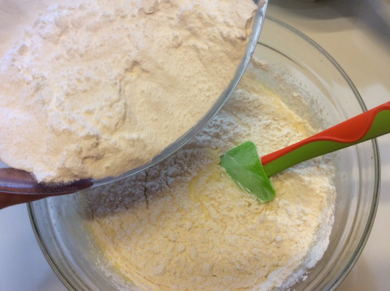 Lo aggiungo poco per volta alla farina mescolando delicatamente