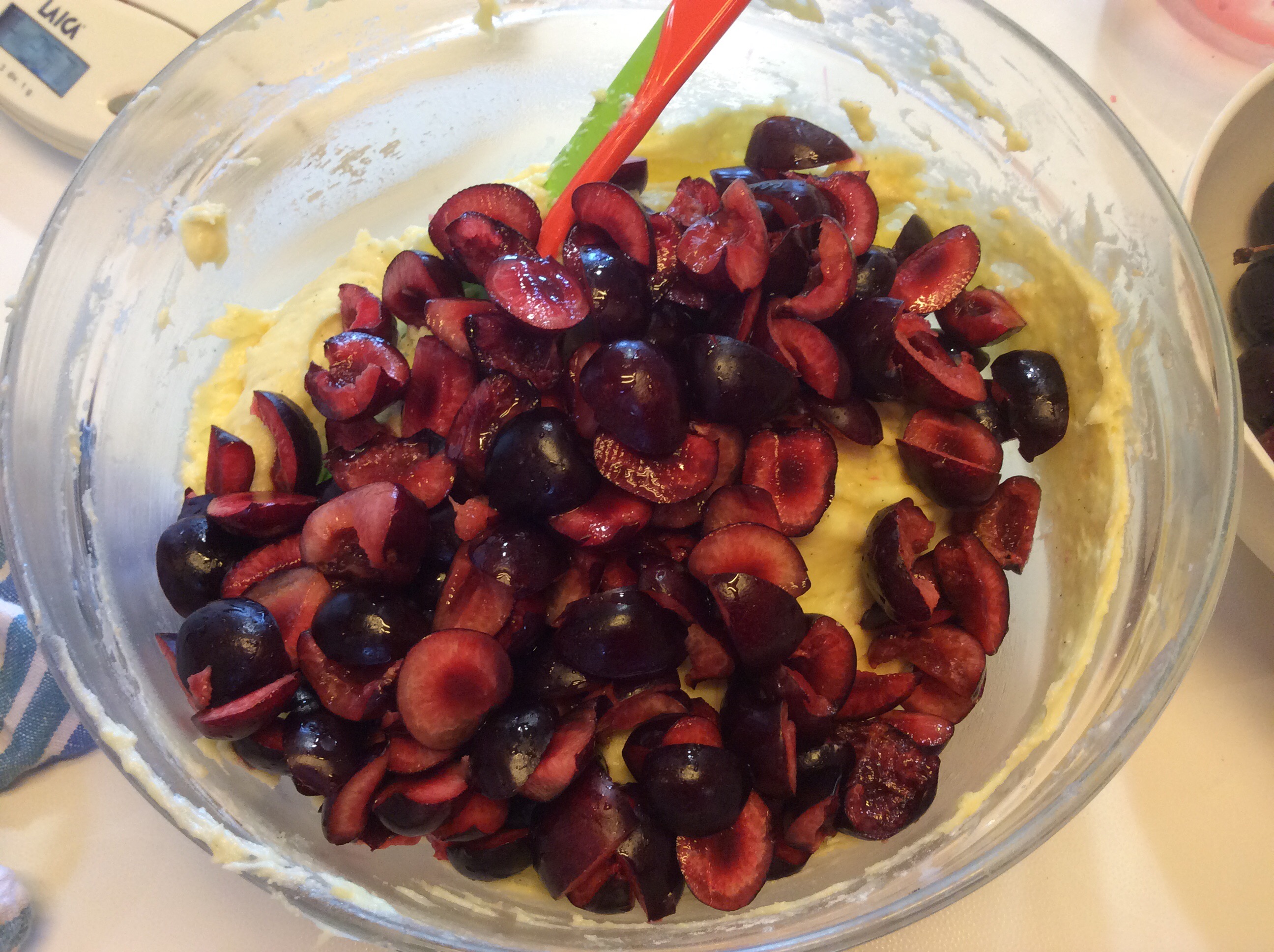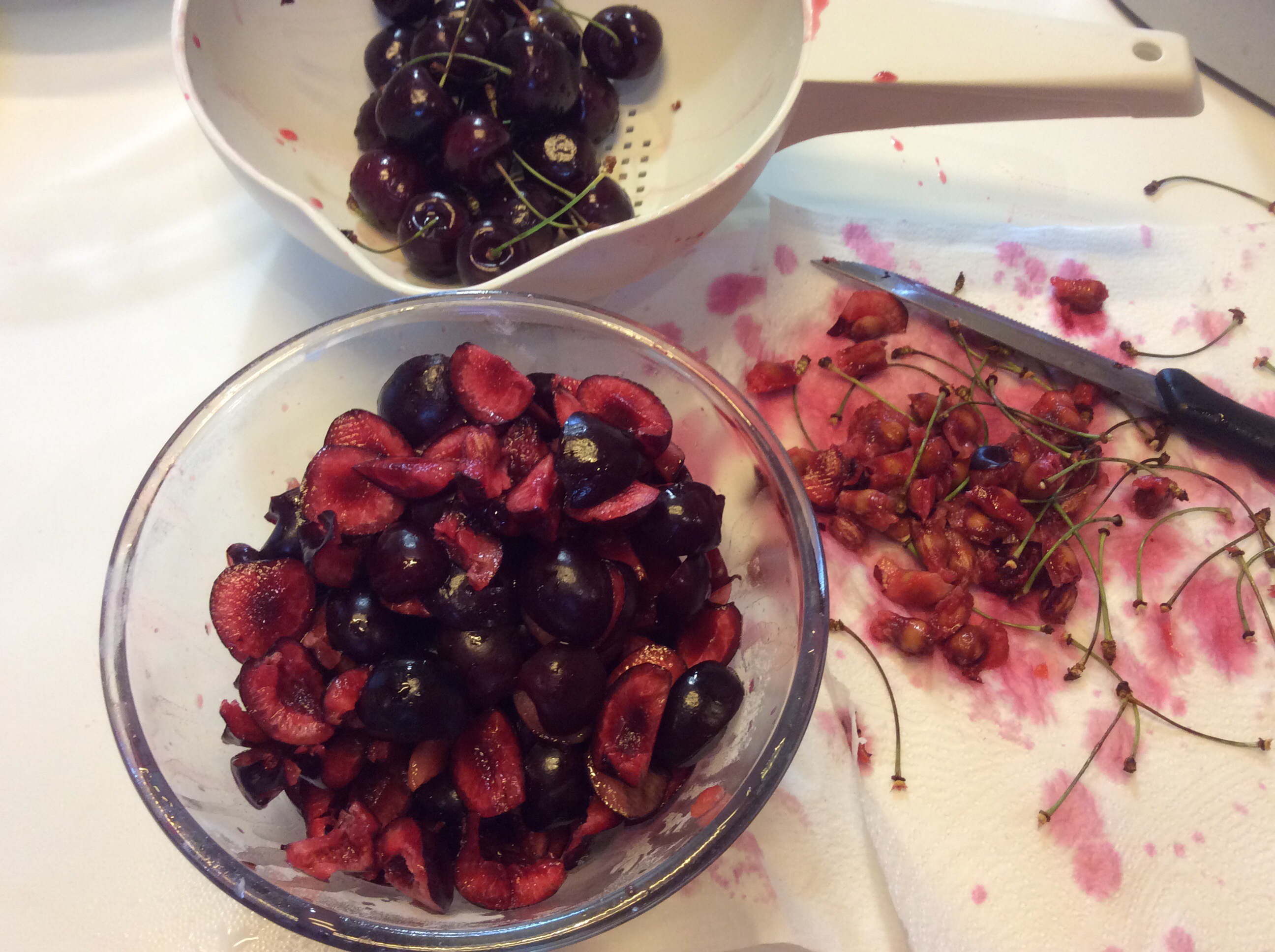 Denocciolo le ciliegie e le taglio a pezzetti
