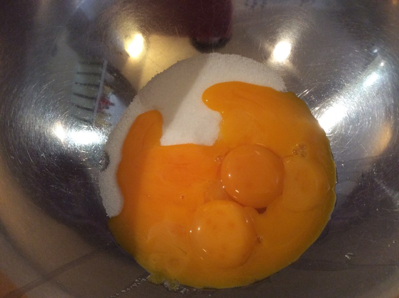 Monto i tuorli con le fruste elettriche  finché diventano chiari e spumosi
