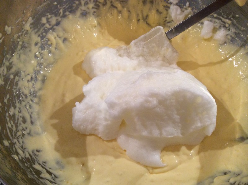 Poi tutto il resto mescolando delicatamente dal basso verso l’alto, devo ottenere una crema uniforme ben amalgamata