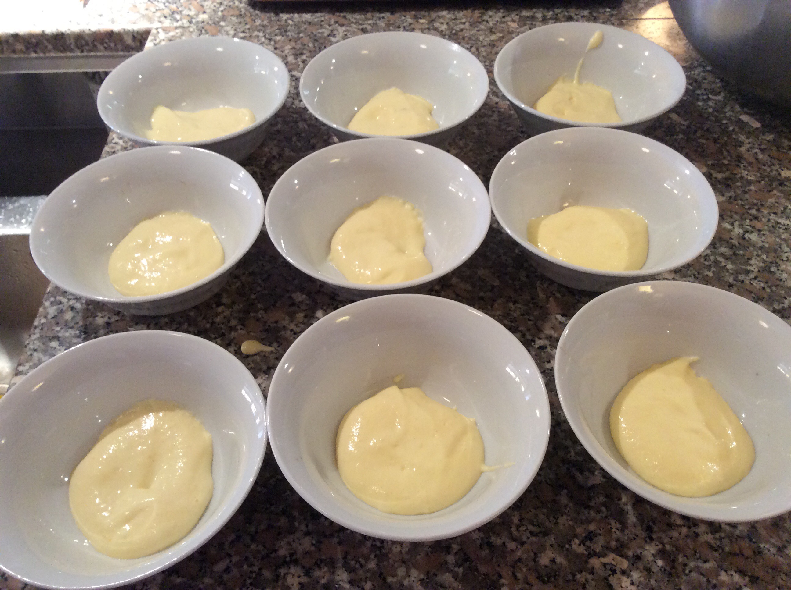 Ricopro le coppette con la pellicola e ripongo alcune ore in frigorifero, al momento di servire spolverizzo con cacao amaro