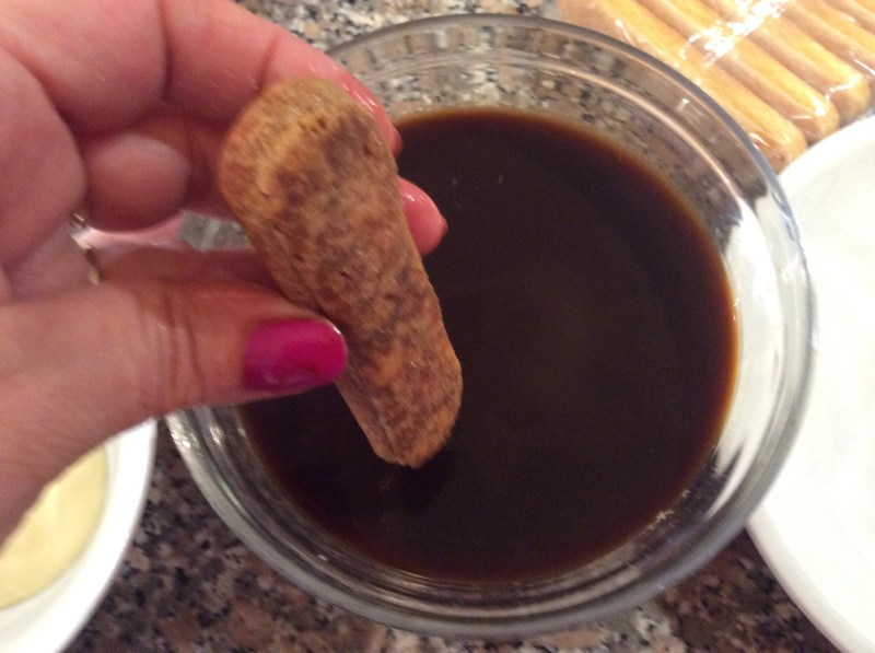 Inzuppo velocemente i savoiardi, fate proprio su e giù, alrimenti poi si spappolano